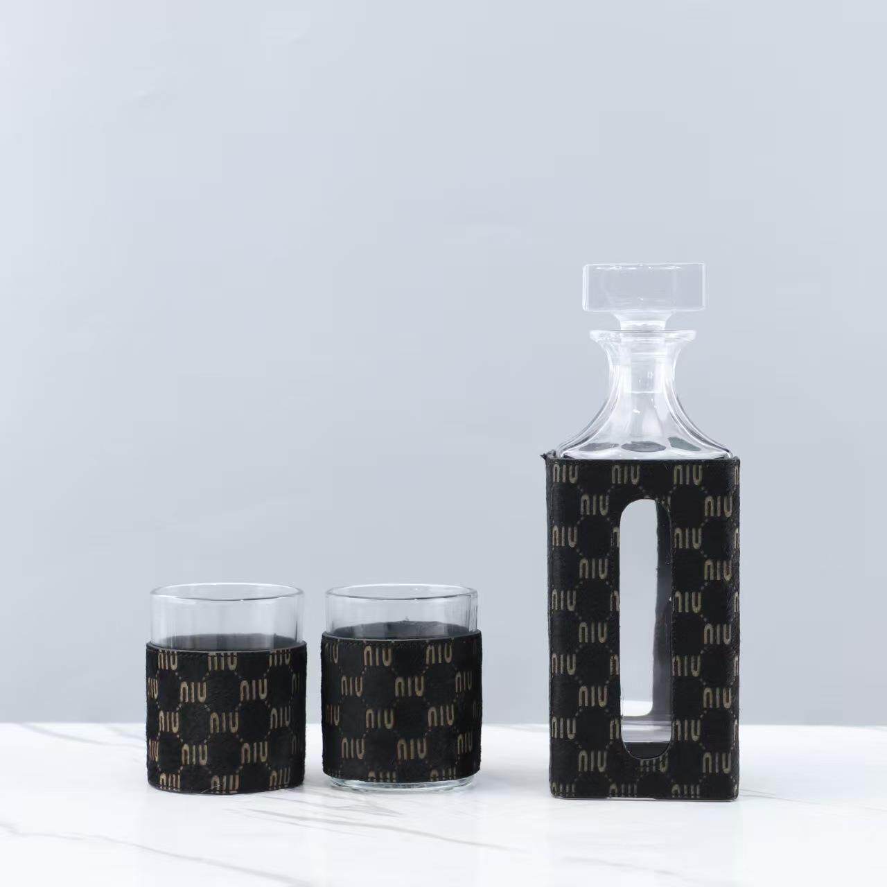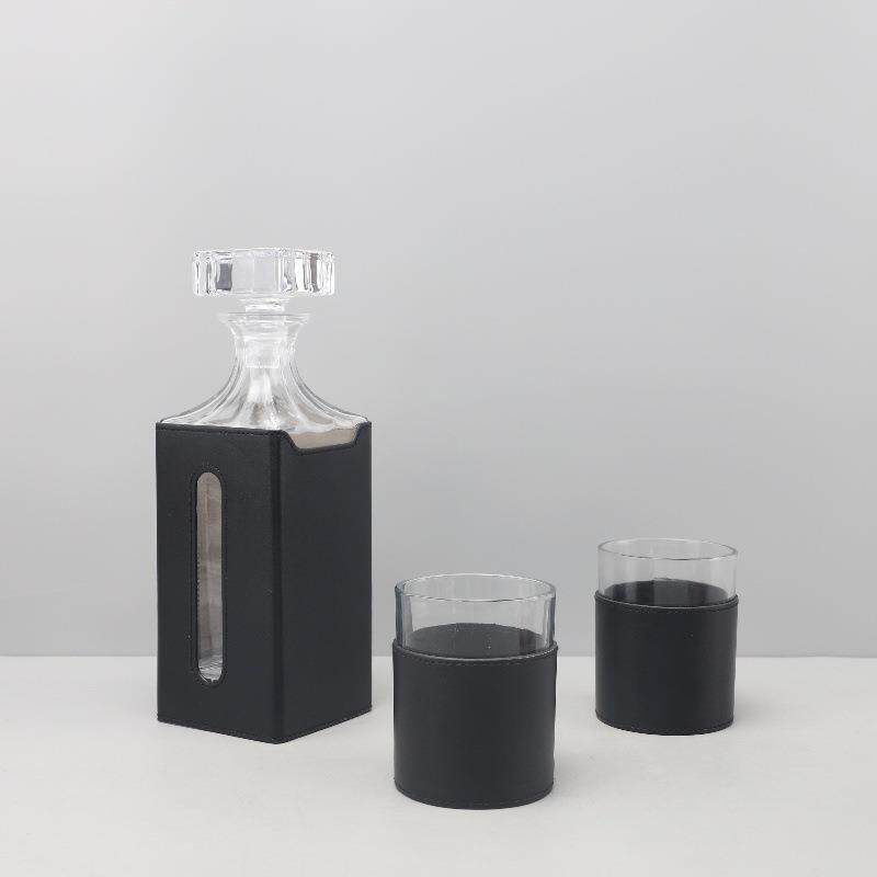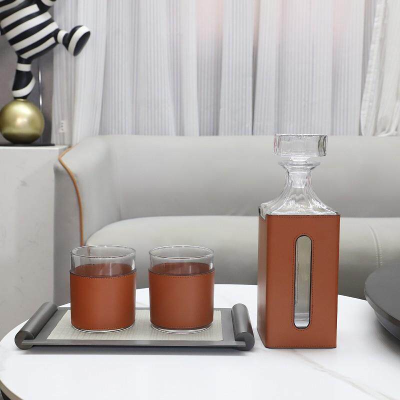 现代简约创意皮革玻璃醒酒器摆件客厅餐厅酒店吧台软装家居装饰品