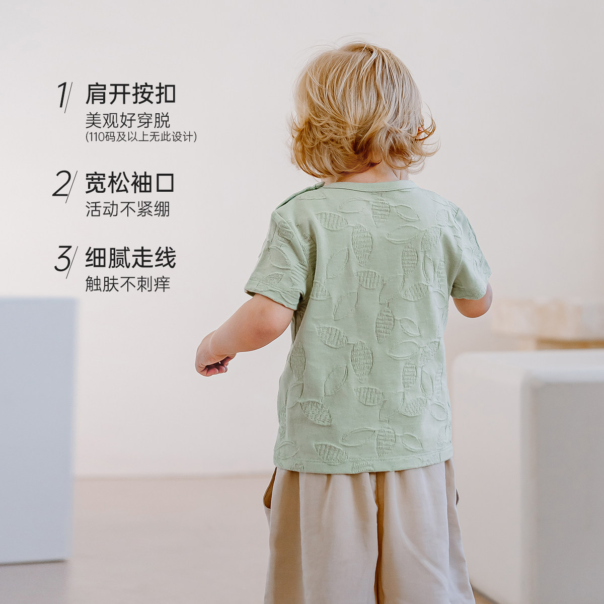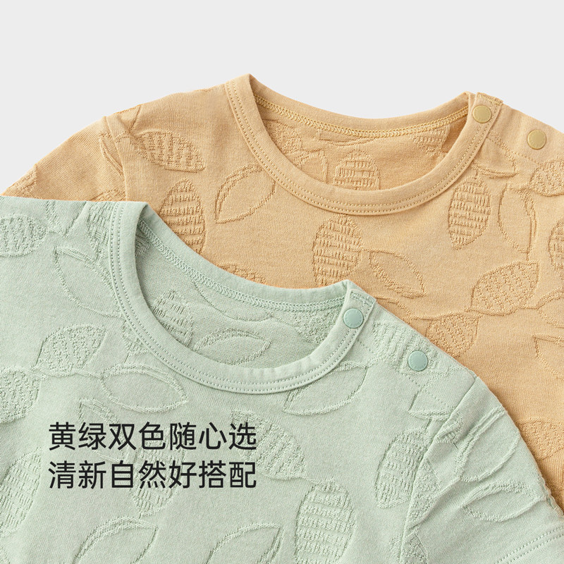 babylove宝宝短袖t恤夏季薄款纯棉浮雕提花上衣婴儿休闲纯色夏装