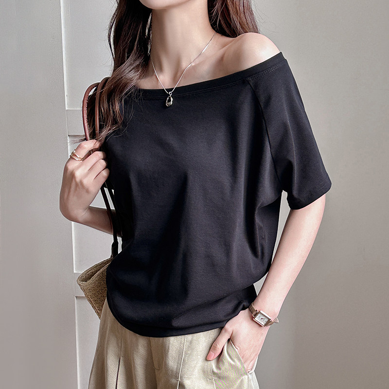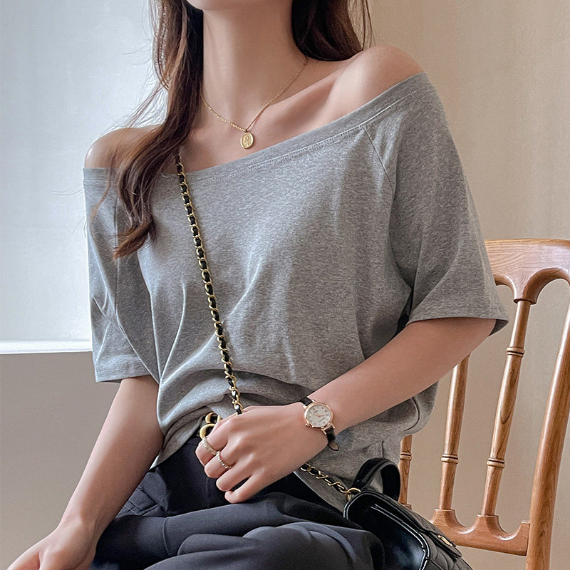 一字肩短袖t恤女2026新款内搭春夏季修身显瘦健身T恤露肩打底上衣