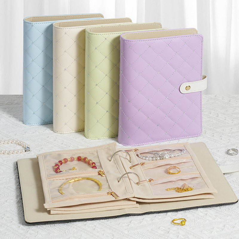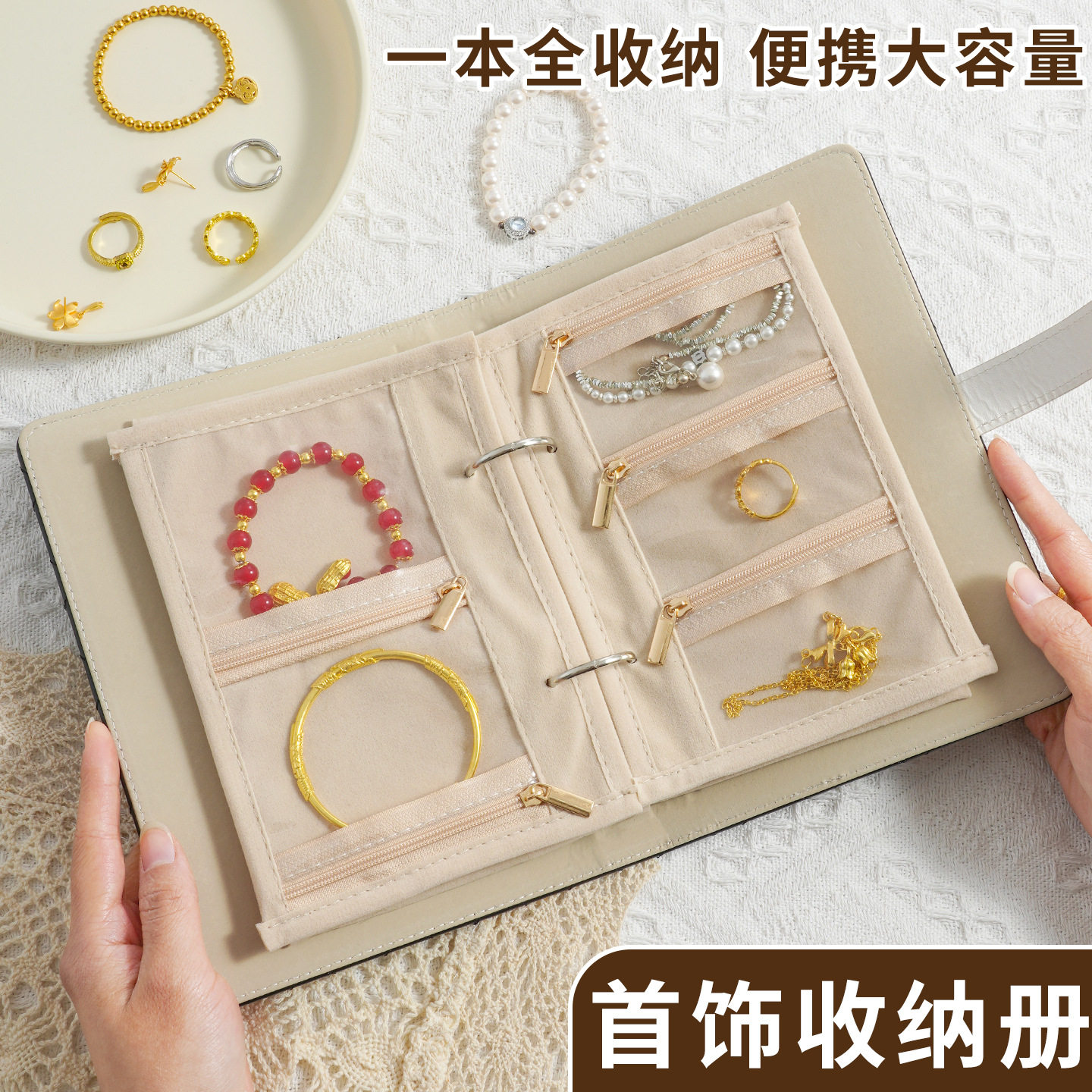 黄金首饰收纳册轻奢精致皮质便携多功能分区折叠珠宝收纳盒旅行手拿包分层银饰银戒项链手链手镯饰品分区收纳