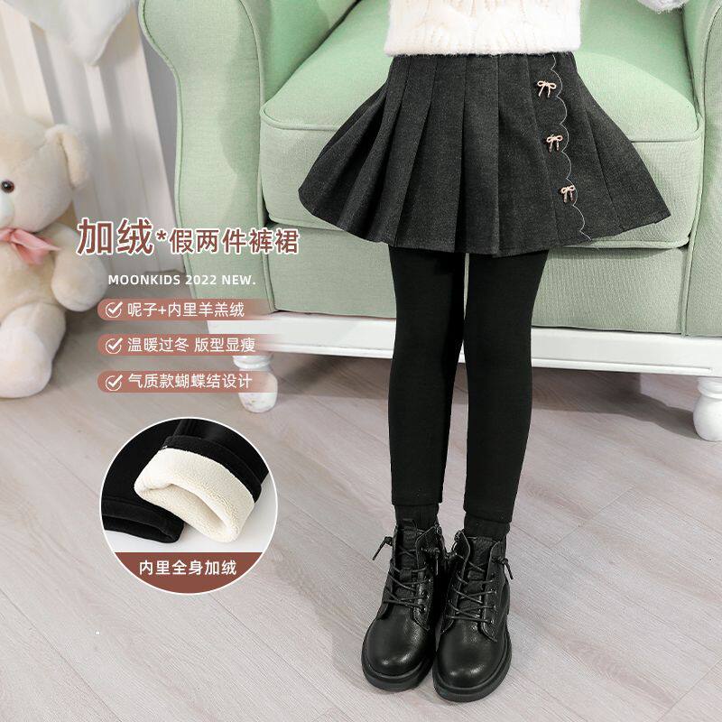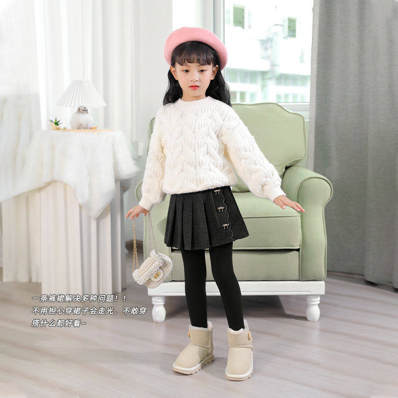 女童加绒加厚打底裤裙新款儿童一体绒假两件裙裤女宝宝裤子THH438