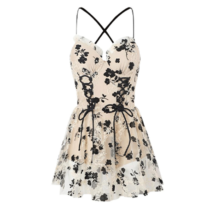 连体泳衣女新款甜美辣妹风吊带连衣裙露背显瘦御姐气质温泉泳装