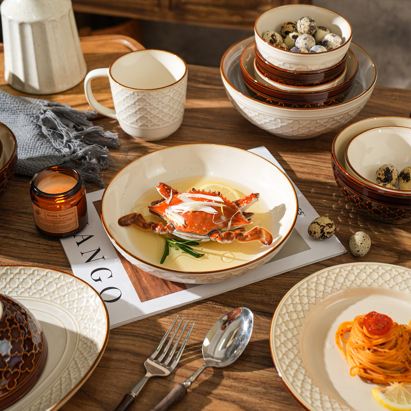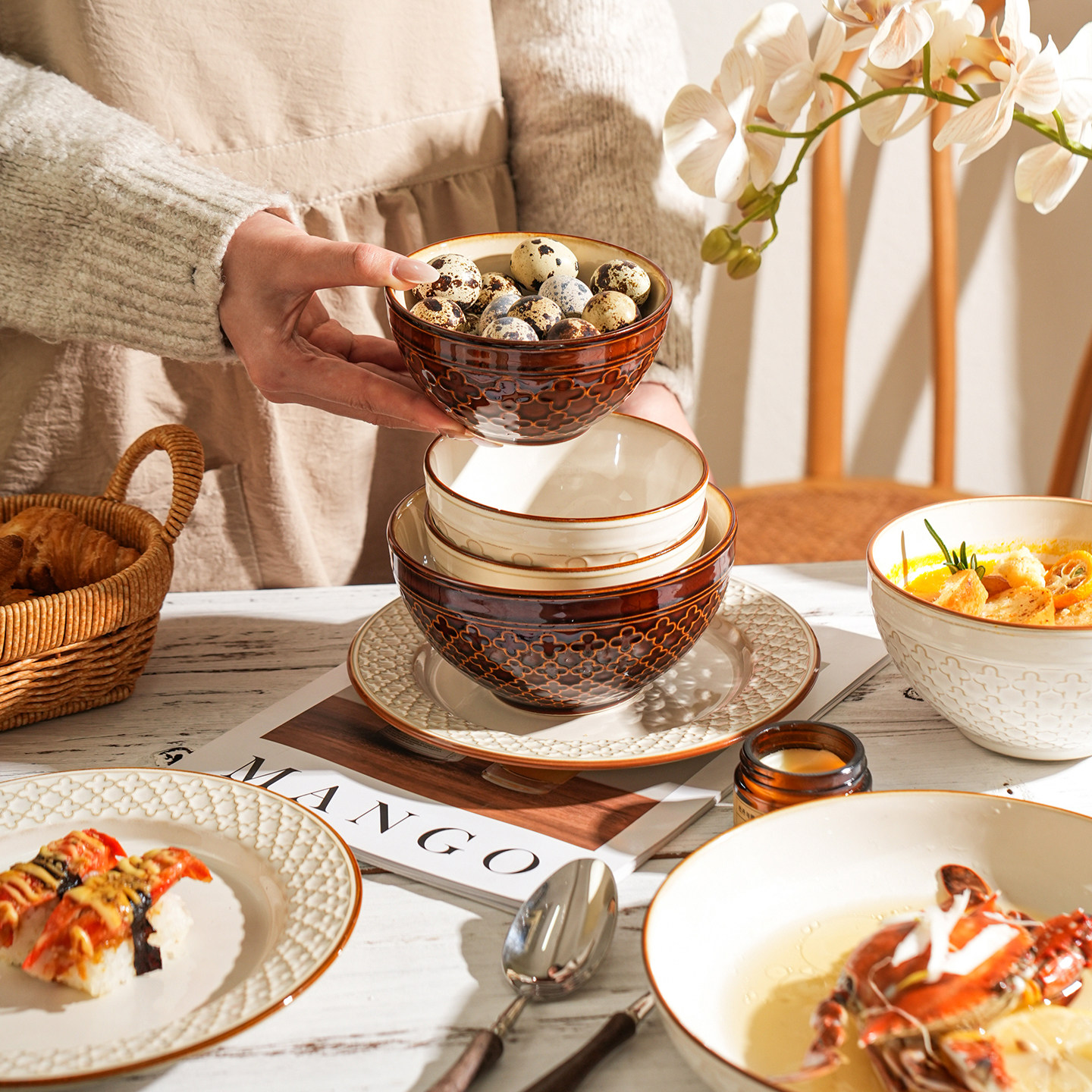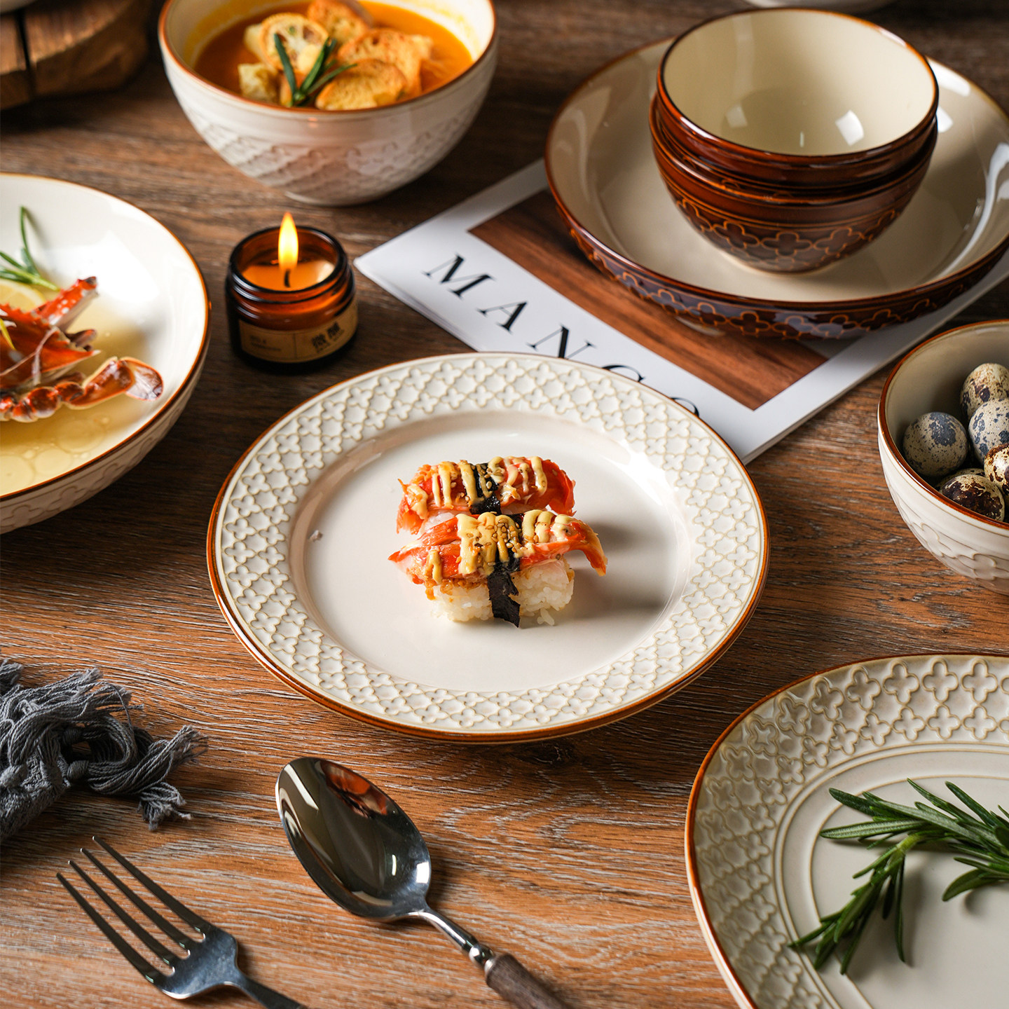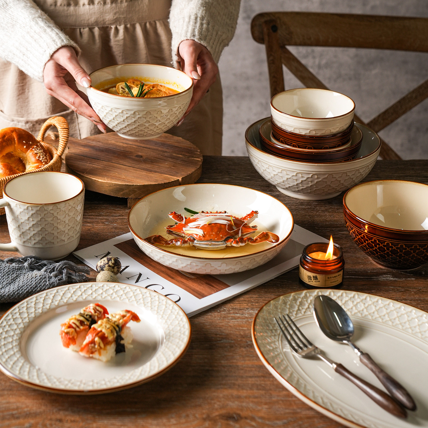 舍里北欧风陶瓷碗盘套装家用复古窑变米饭碗碗碟餐具高级感西餐盘