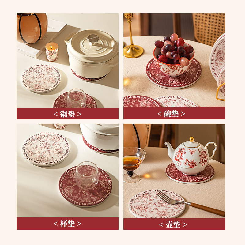 摩登主妇玫瑰假日餐桌隔热垫防烫垫锅垫高级感轻奢耐杯垫桌垫碗垫