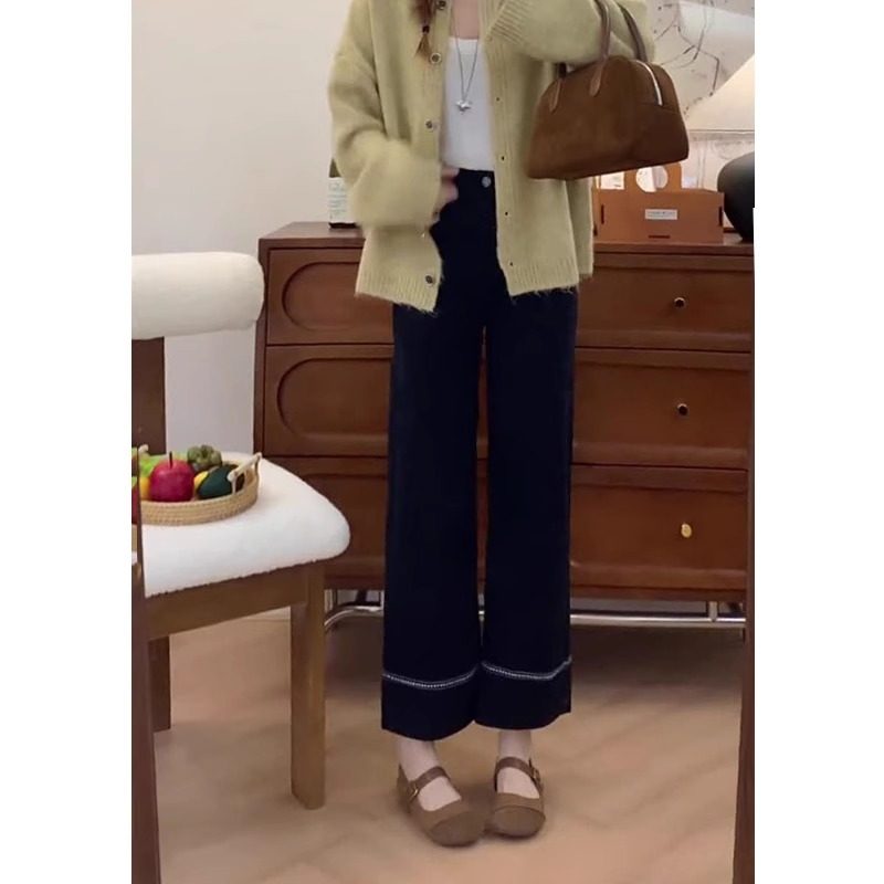 四面弹丹宁色牛仔阔腿裤25年新款宽松显瘦牛仔长裤89173