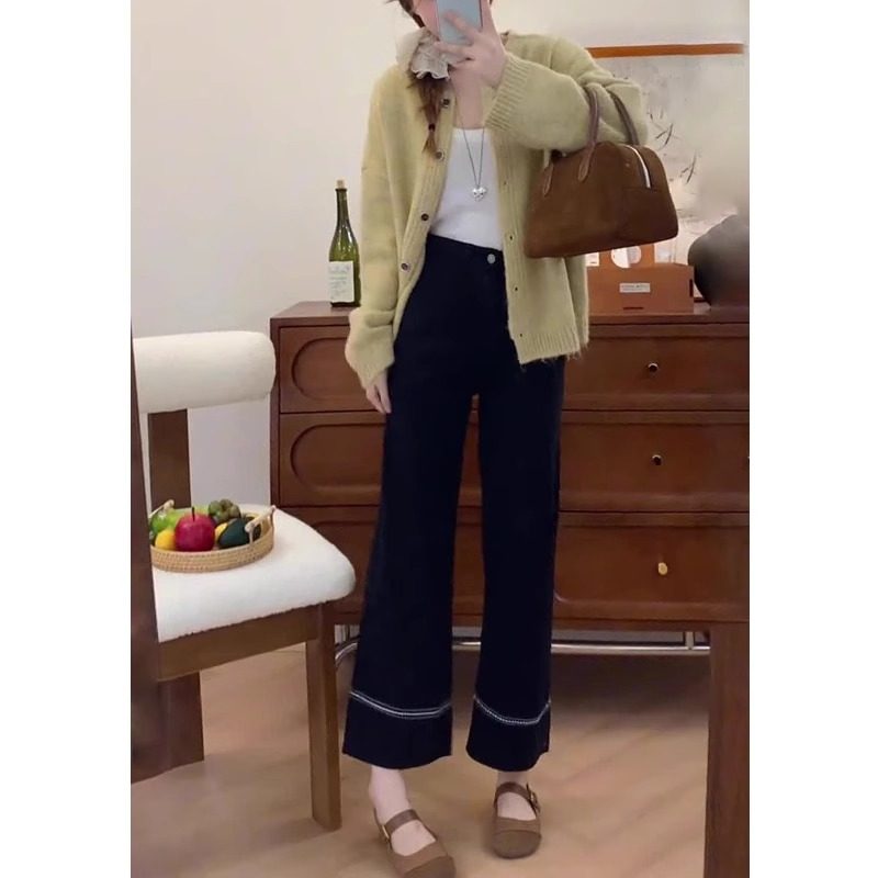 王家有鱼【古早蓝灰】2025秋季新款微喇牛仔裤中高腰不贴腿辣妹女