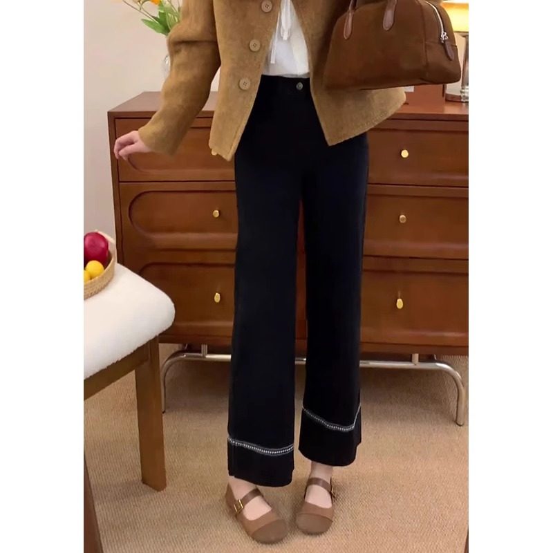 王家有鱼加绒复古微喇裤爆款时尚显瘦女裤2025秋冬新款百搭牛仔裤
