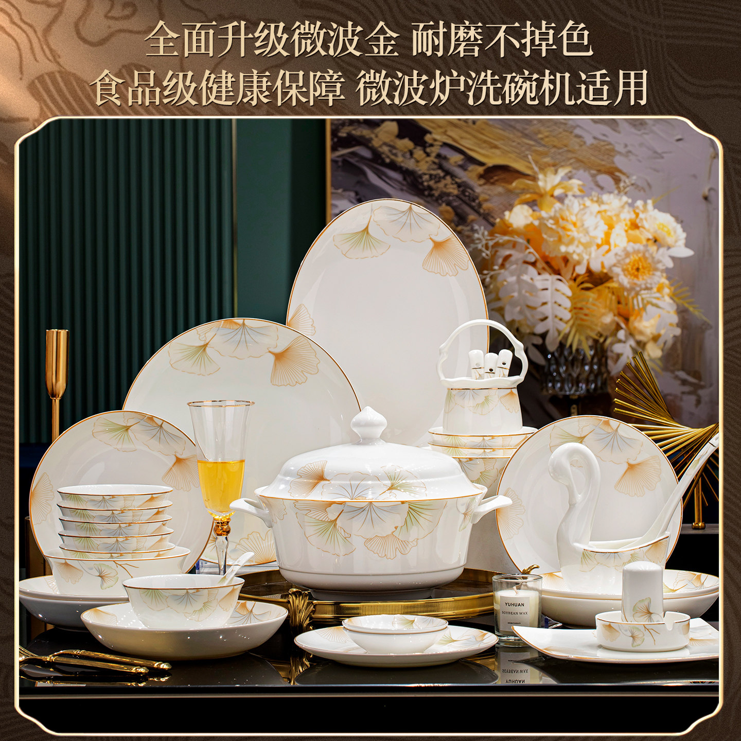 碗家用2025新款碗盘餐具套装高颜值景德镇轻奢风陶瓷碗碟套装乔迁