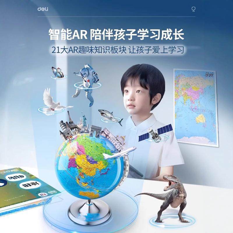 得力地球仪初中生小学生用3d立体凹凸磁悬浮儿童启蒙正版男孩AR智能教学世界地图官方旗舰店生日礼物带灯发光