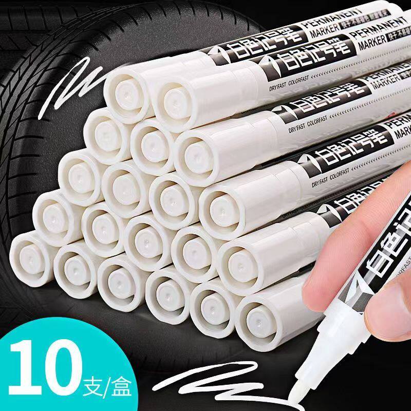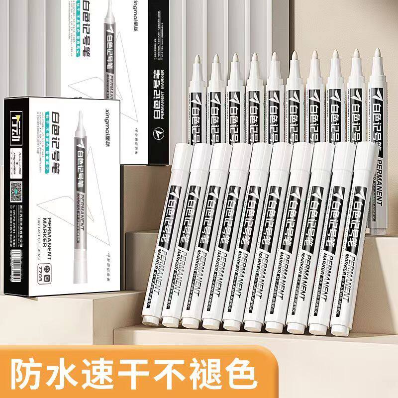 白色记号笔油性防水速干不掉色粗头大容量可加墨快递白色记号笔