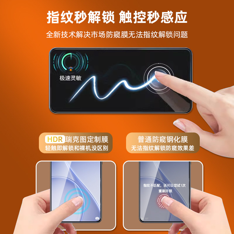 升级指纹秒解版 新25°真防窥膜 高透光无色