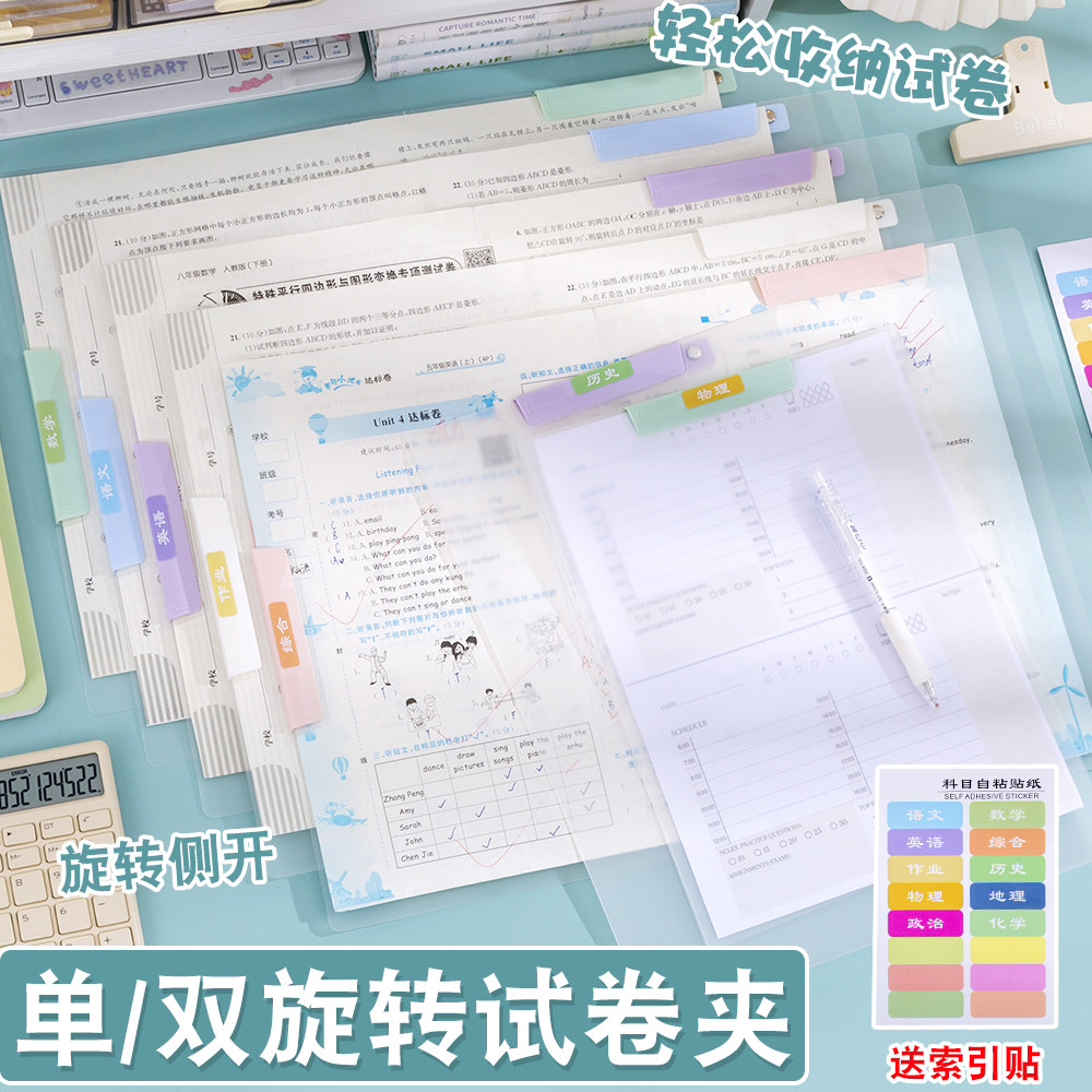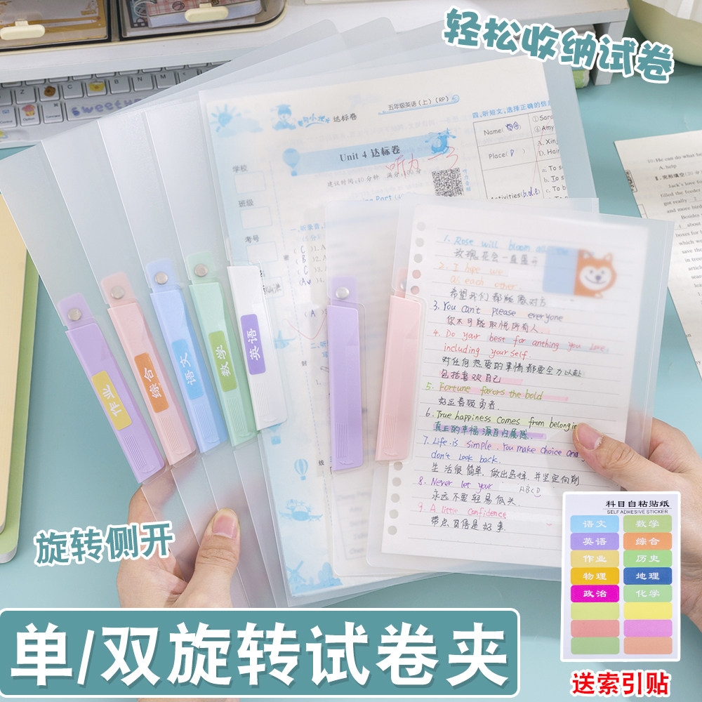 A4旋转夹透明夹文件夹试卷夹学生侧开拉杆夹A3专用马卡龙新款收纳整理分类科目