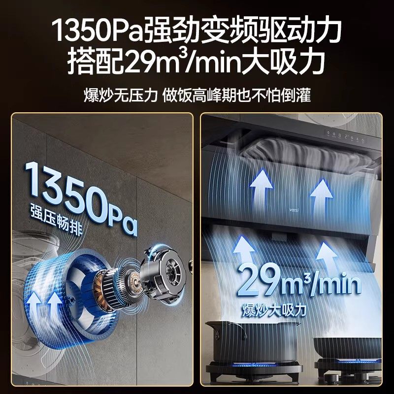[小飞翼Pro]华帝油烟机K9/K9G顶侧双吸抽油烟机家用变频烟灶套装