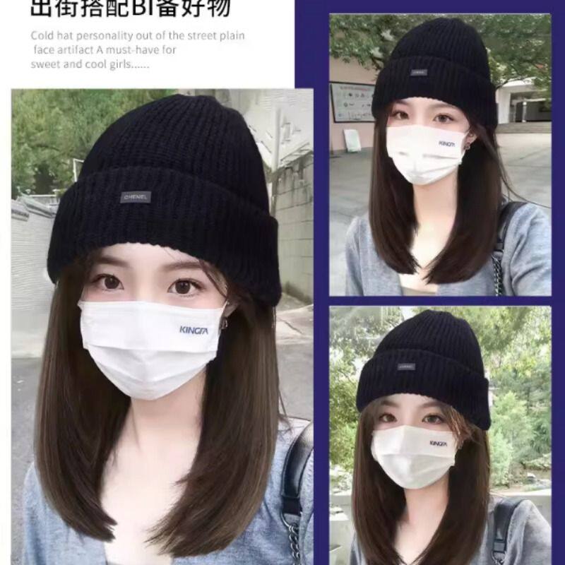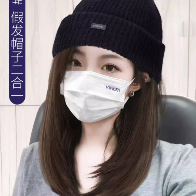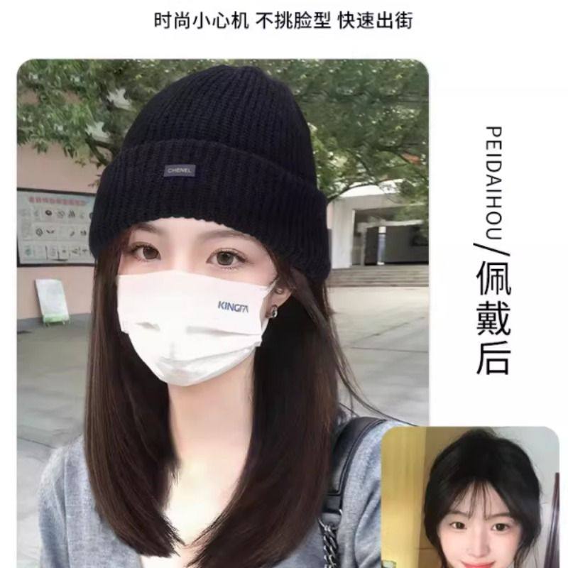 帽子假发一体女款2025冬季新款毛线针织帽假发女长发仿真发全头套