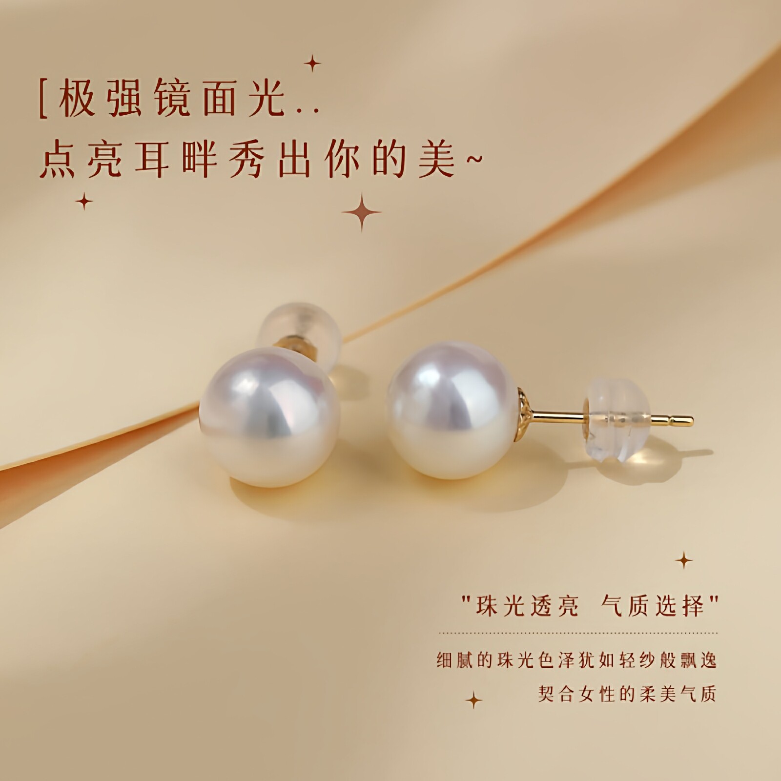 梵宝雅阁诸暨淡水珍珠耳钉18K金素钉耳环女人礼物18k金黄金正圆