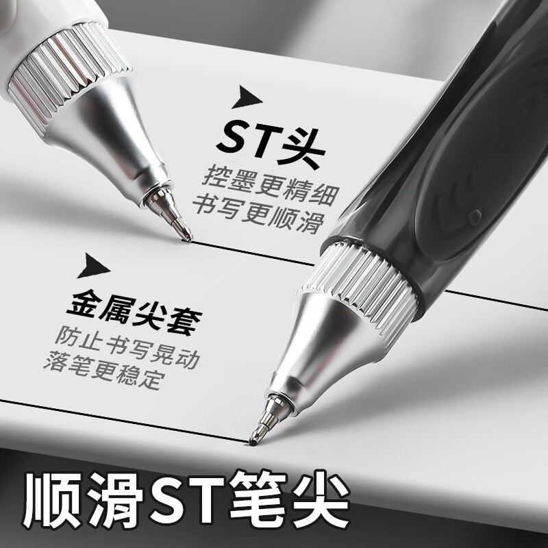 国风桶装刷题笔速干顺滑黑笔高颜值按动中性笔ST0.5黑色笔芯水性圆珠笔小学生专用考试笔非按斤卖碳素签字笔