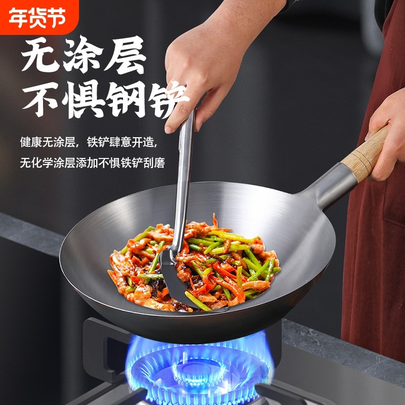 铁锅官方旗舰炒菜锅老式炒锅铁锅家用不粘锅无涂层燃气灶适用