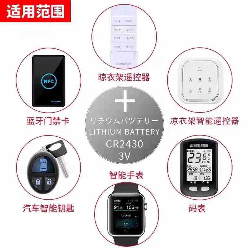 CR2430纽扣电池汽车钥匙遥控器热水器晾衣架智能浴霸3V锂电池适用