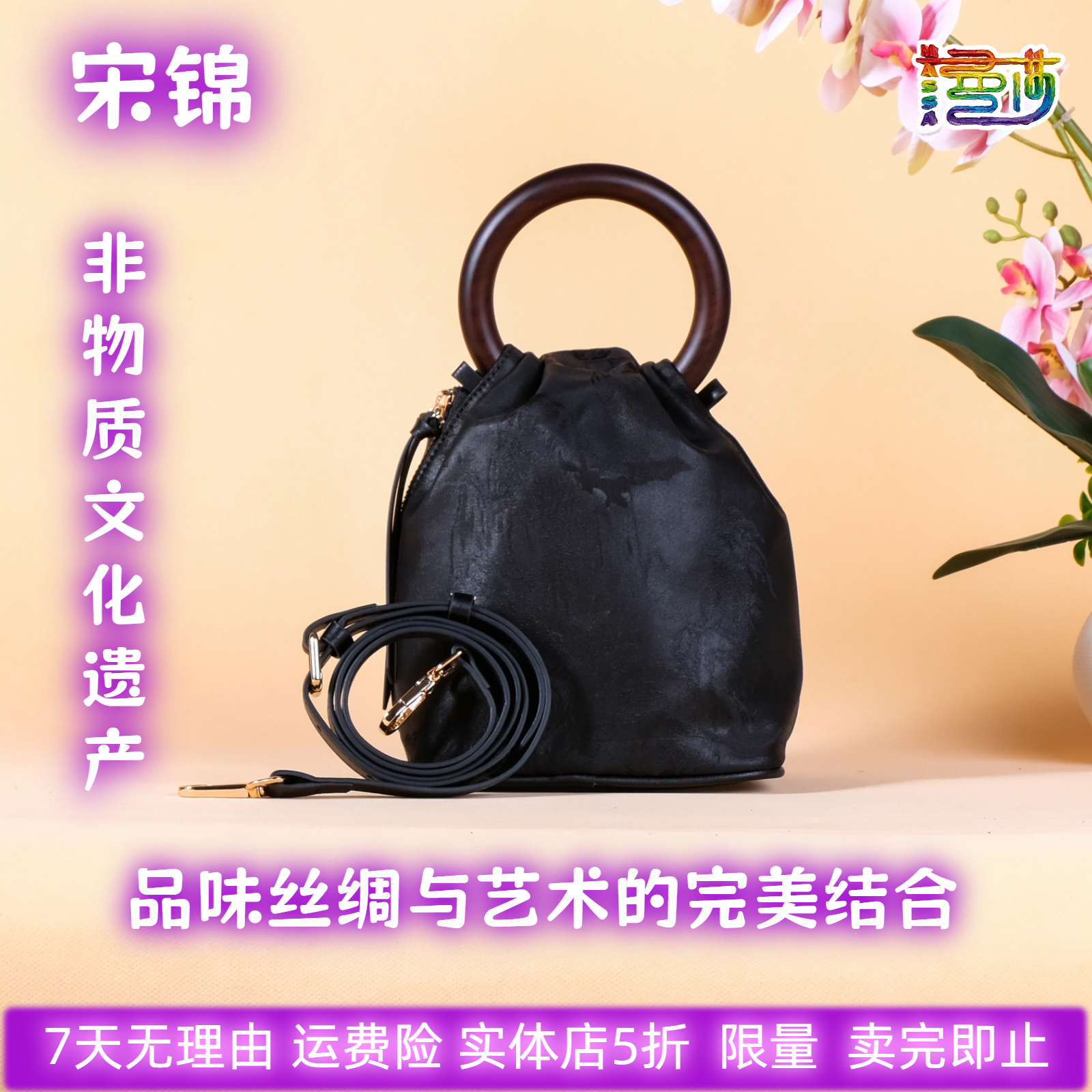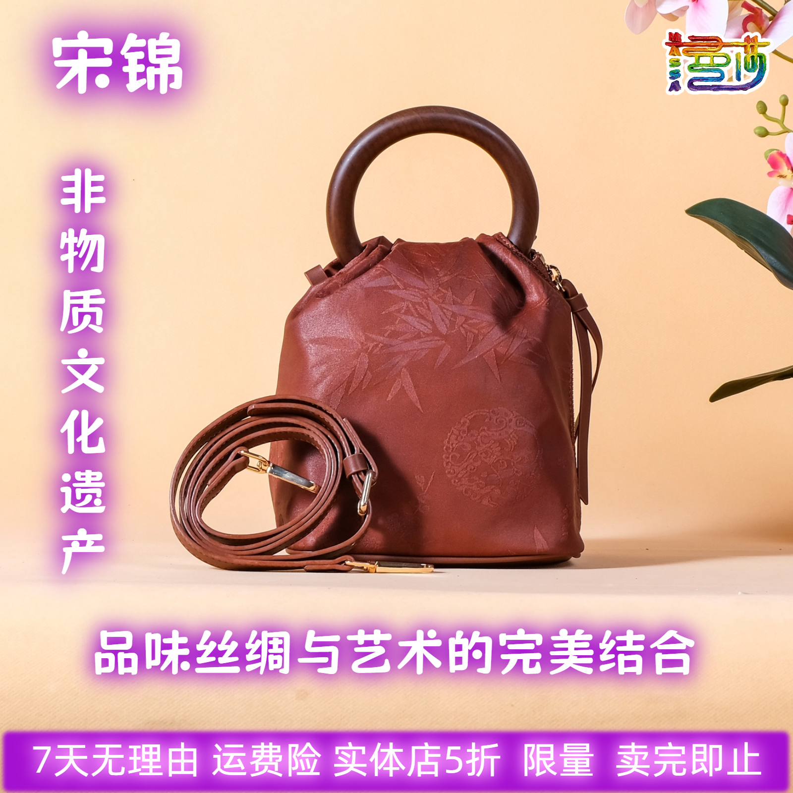 曼莎国风宋锦香云纱手提斜挎刺绣真丝牛皮新款新中式女包旗袍包包