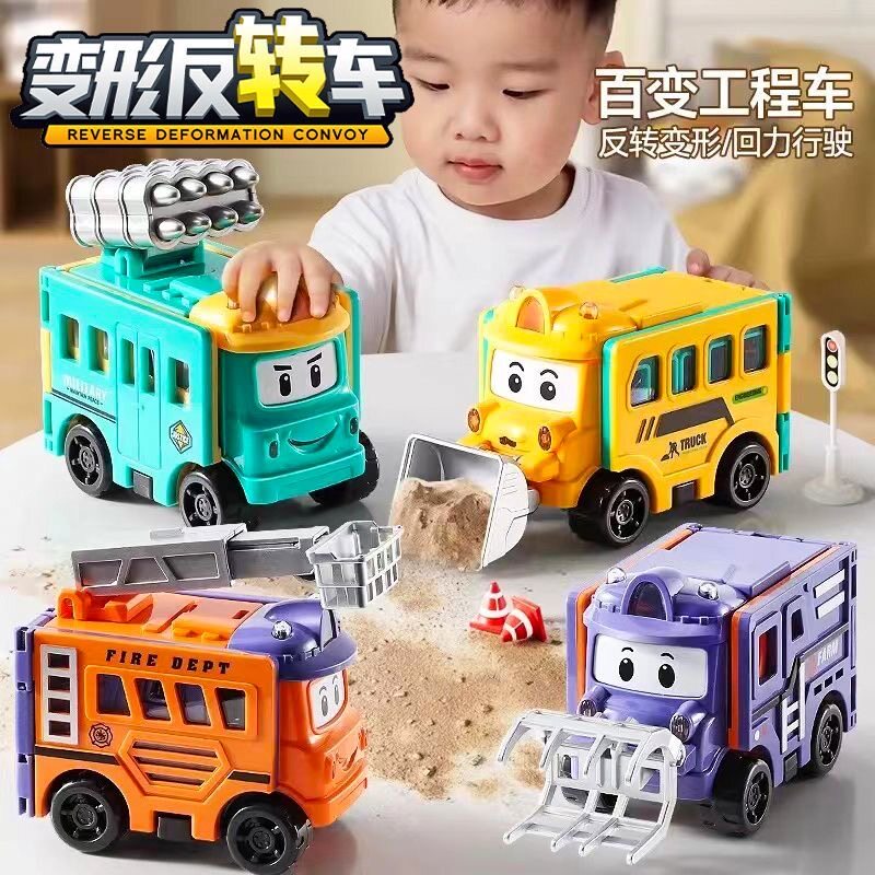 儿童玩具车男孩3到6岁可变形反转车宝宝益智翻翻车校巴男生小汽车