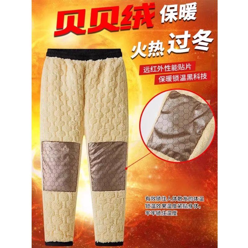 啄木鸟石墨烯冬季羊羔绒大码休闲加厚加绒保暖宽松羽绒防风棉裤男
