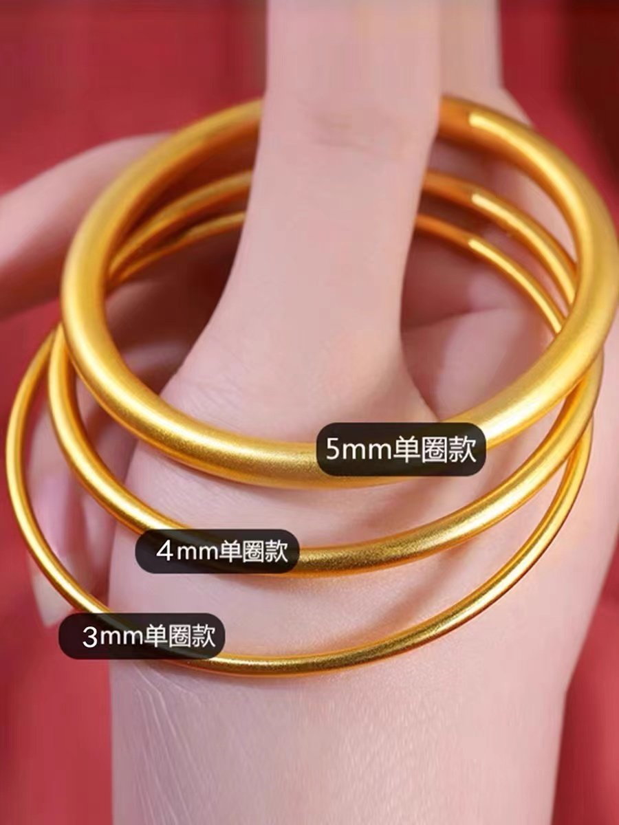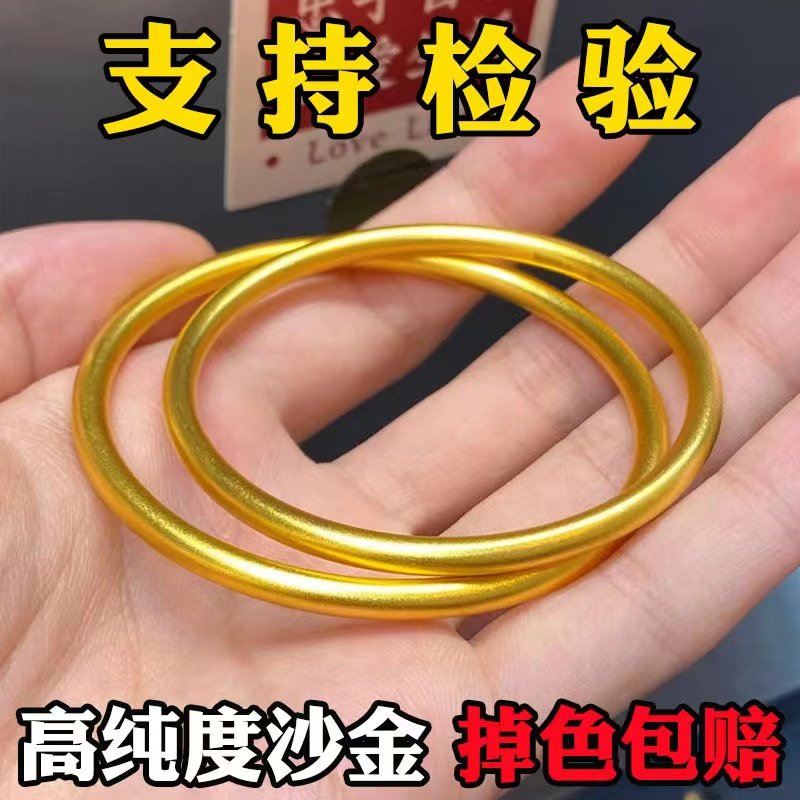 【永不掉色】古法越南沙金传承手镯磨砂哑光手镯女黄金色闭口手环