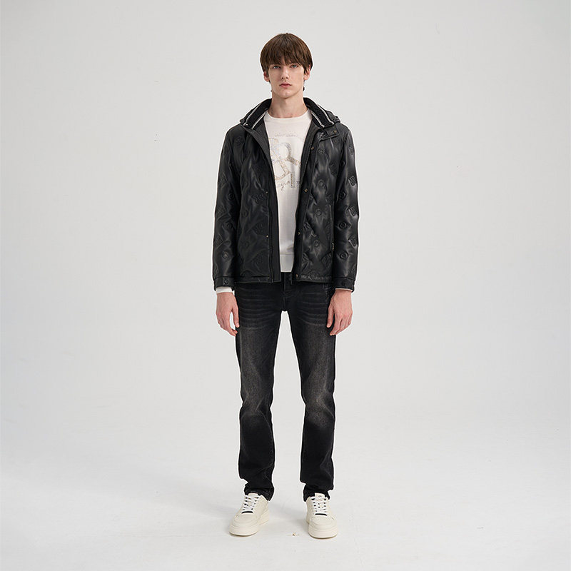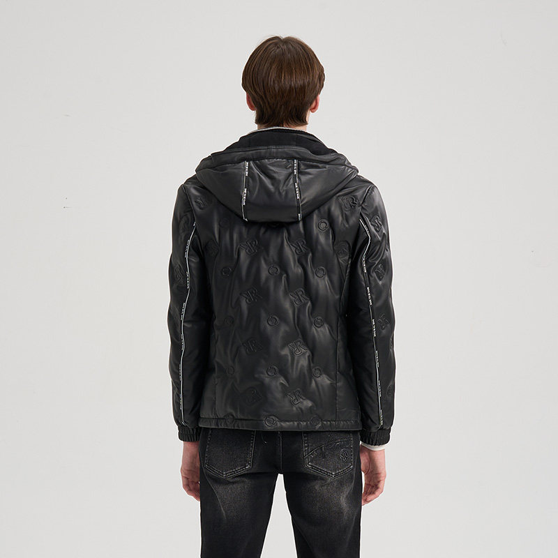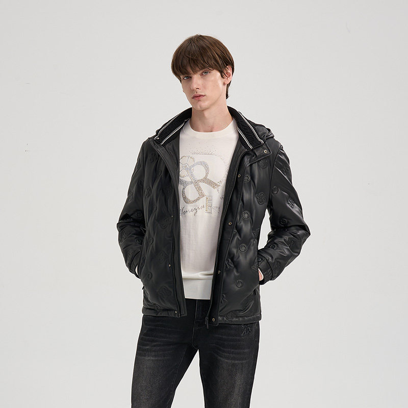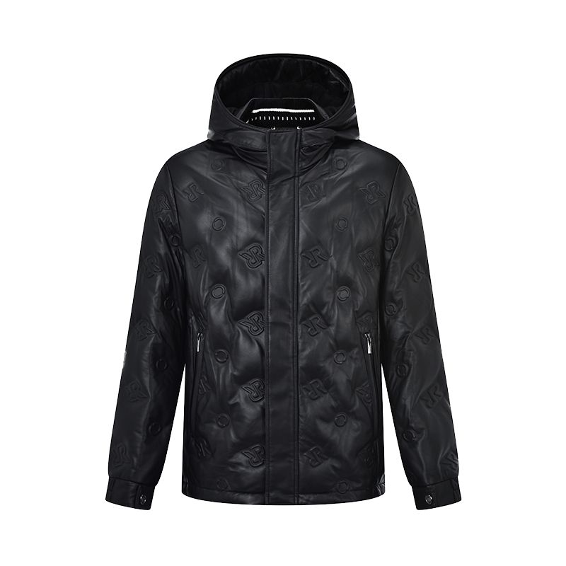 RARE威雅男装2025秋冬新款双R压印绵羊皮革皮衣鹅绒羽绒服外套男