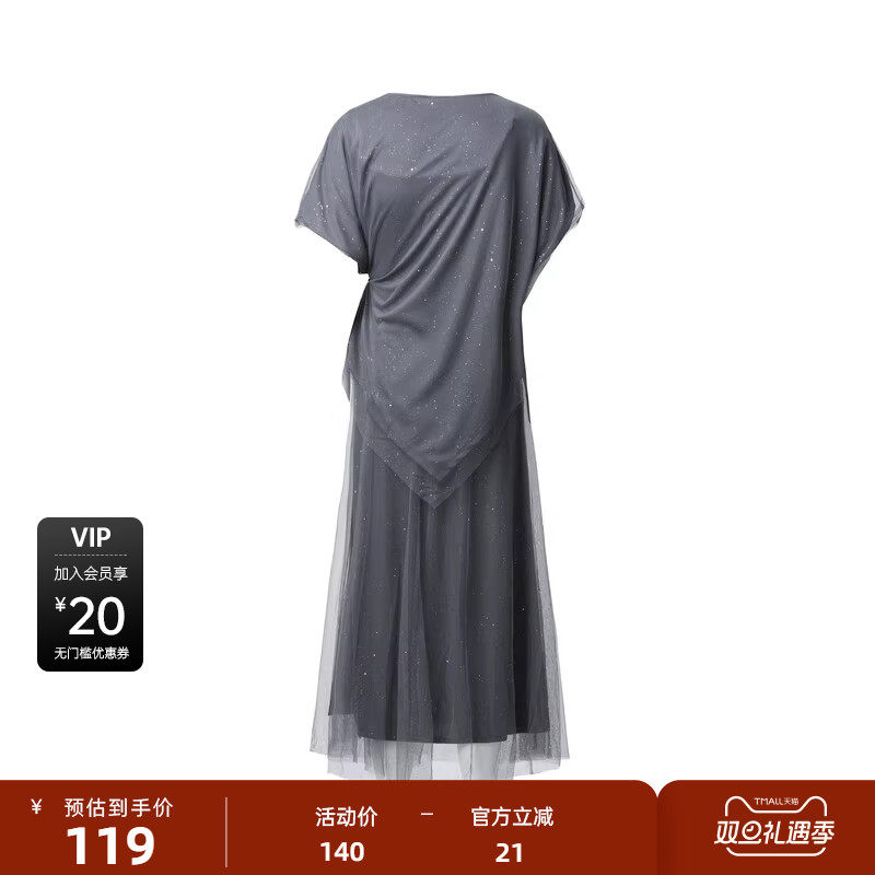 sdeer圣迪奥女装优雅圆领网纱两件套吊带连衣裙S223Z12B1