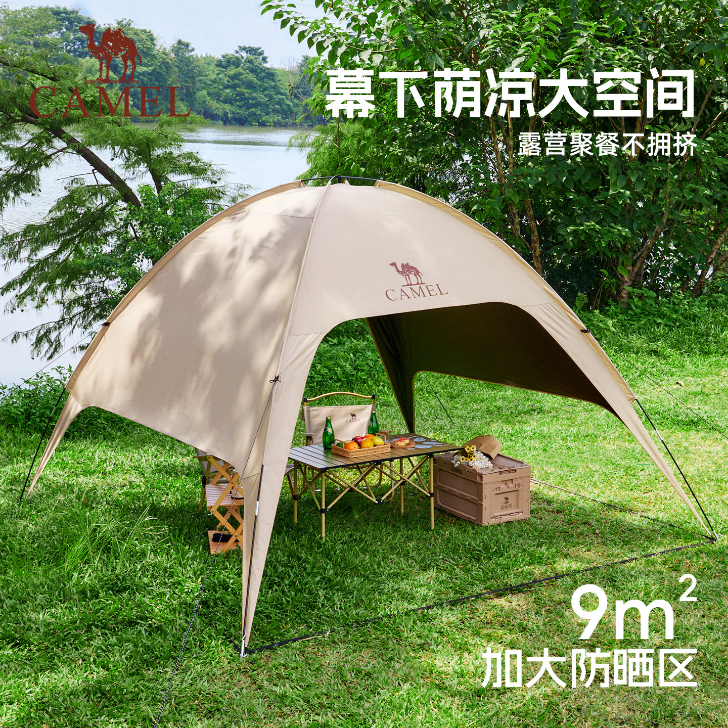 骆驼穹顶天幕帐篷户外露营一体遮阳棚黑胶简易速开伞布2025新款