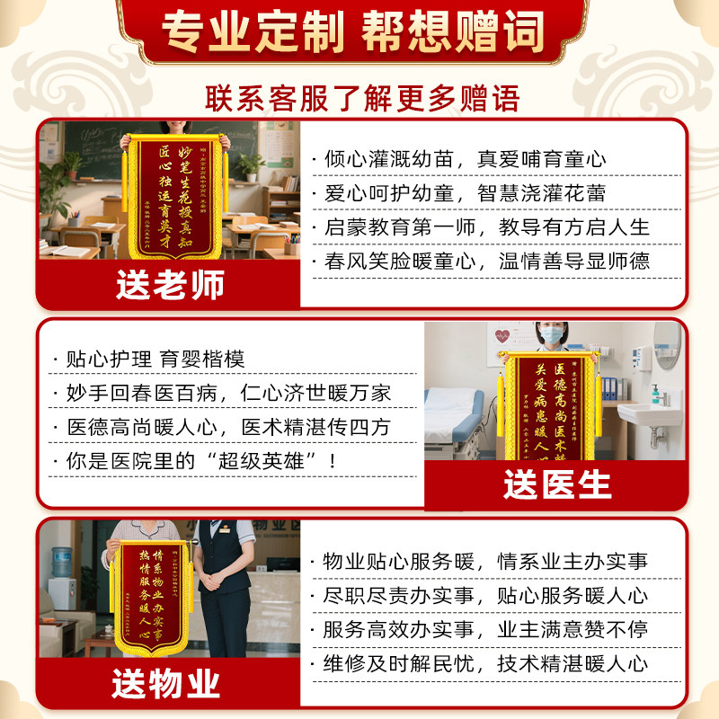 锦旗定制定做感谢医生医院护士赠送月嫂幼儿园老师民警装修公司物业管家服务教师节驾校律师高档旌旗订做制作