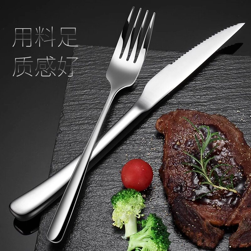 德国西餐刀叉盘子套装家用304不锈钢欧式高档切牛排刀叉勺三件套