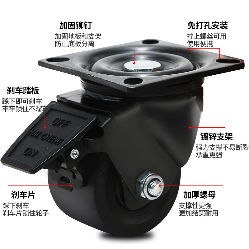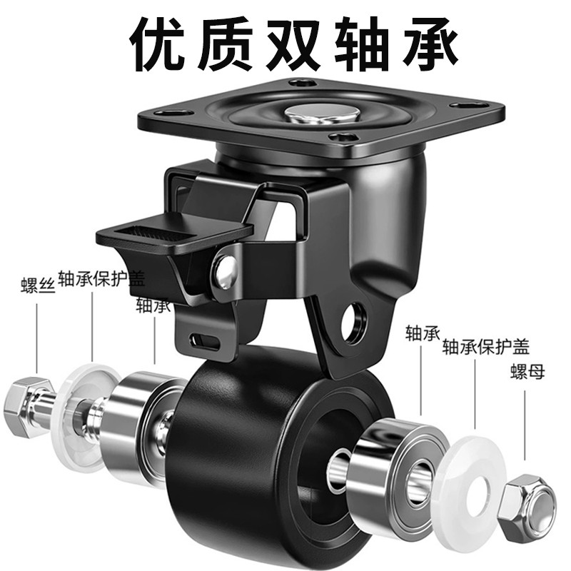 低重心万向轮承重万向轮轮子2寸3寸4寸推车轮带刹重型万向轮脚轮