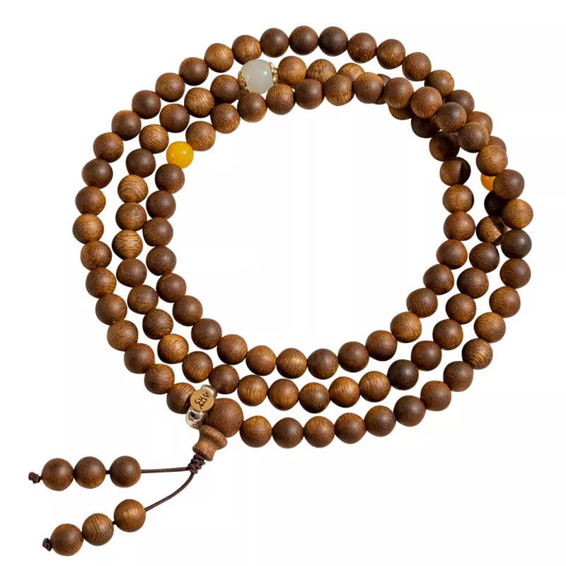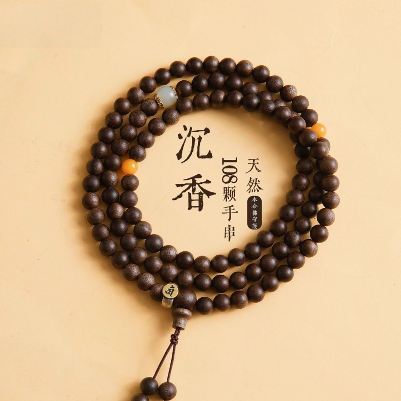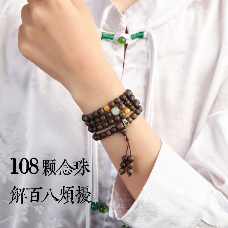天然越南奇楠沉香手串女沉水级108颗木质真品念珠佛珠手链男棋楠