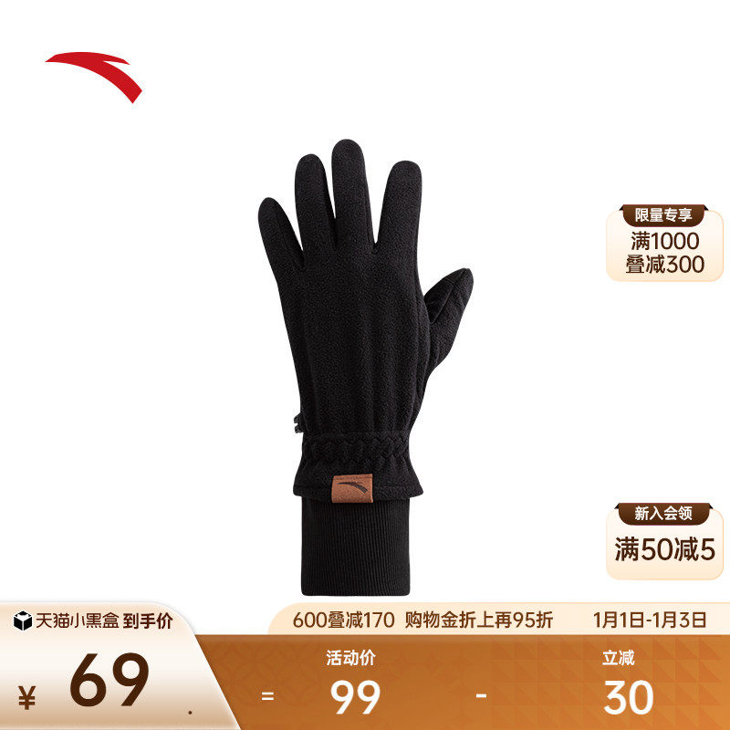 安踏运动手套男女新款骑行户外抓绒摇粒绒耐磨防护连指手套