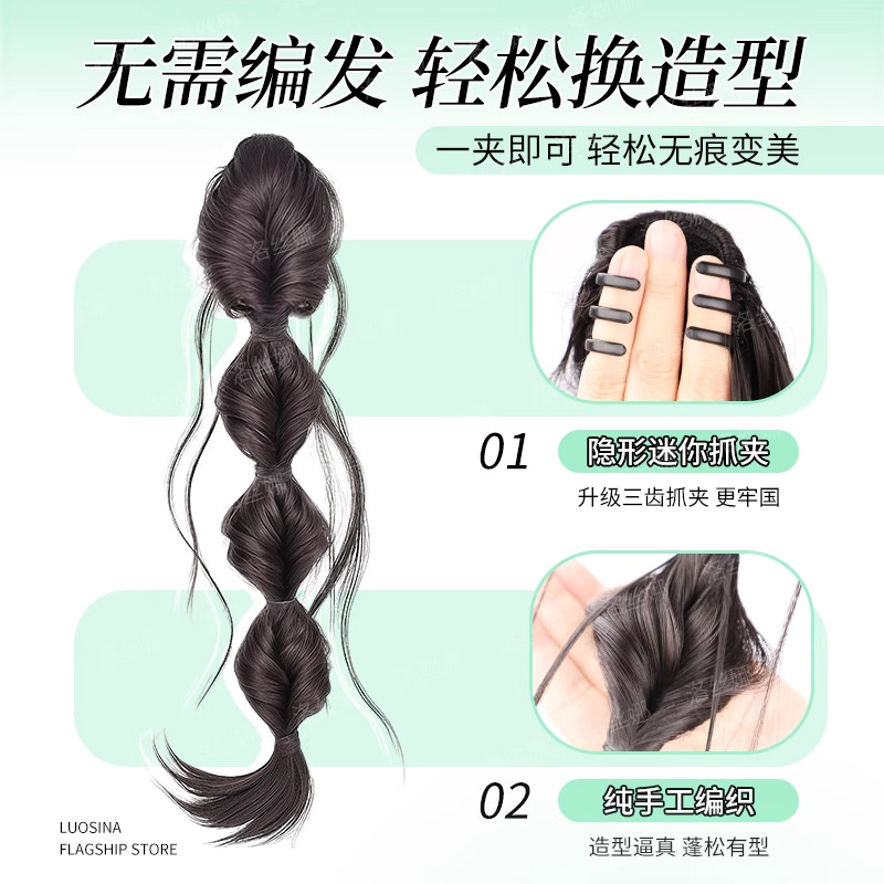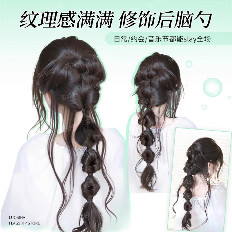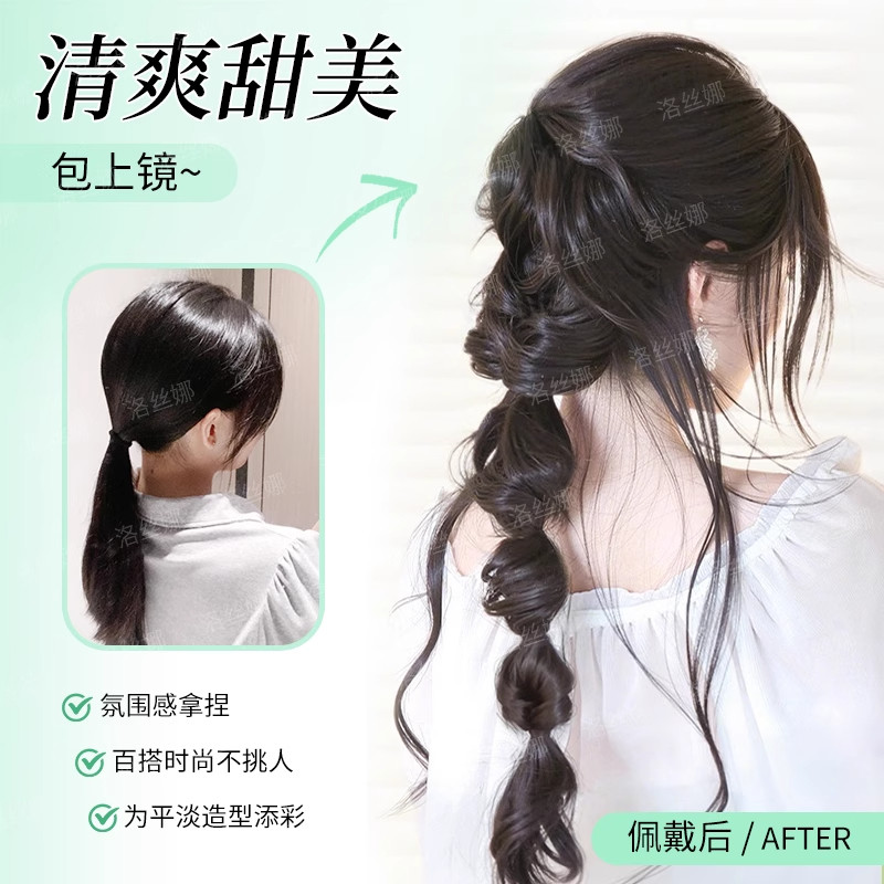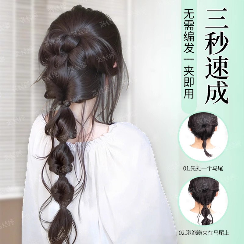 假发辫子抽丝泡泡辫马尾仿真发夏日ins抓夹麻花长辫子假发辫马尾