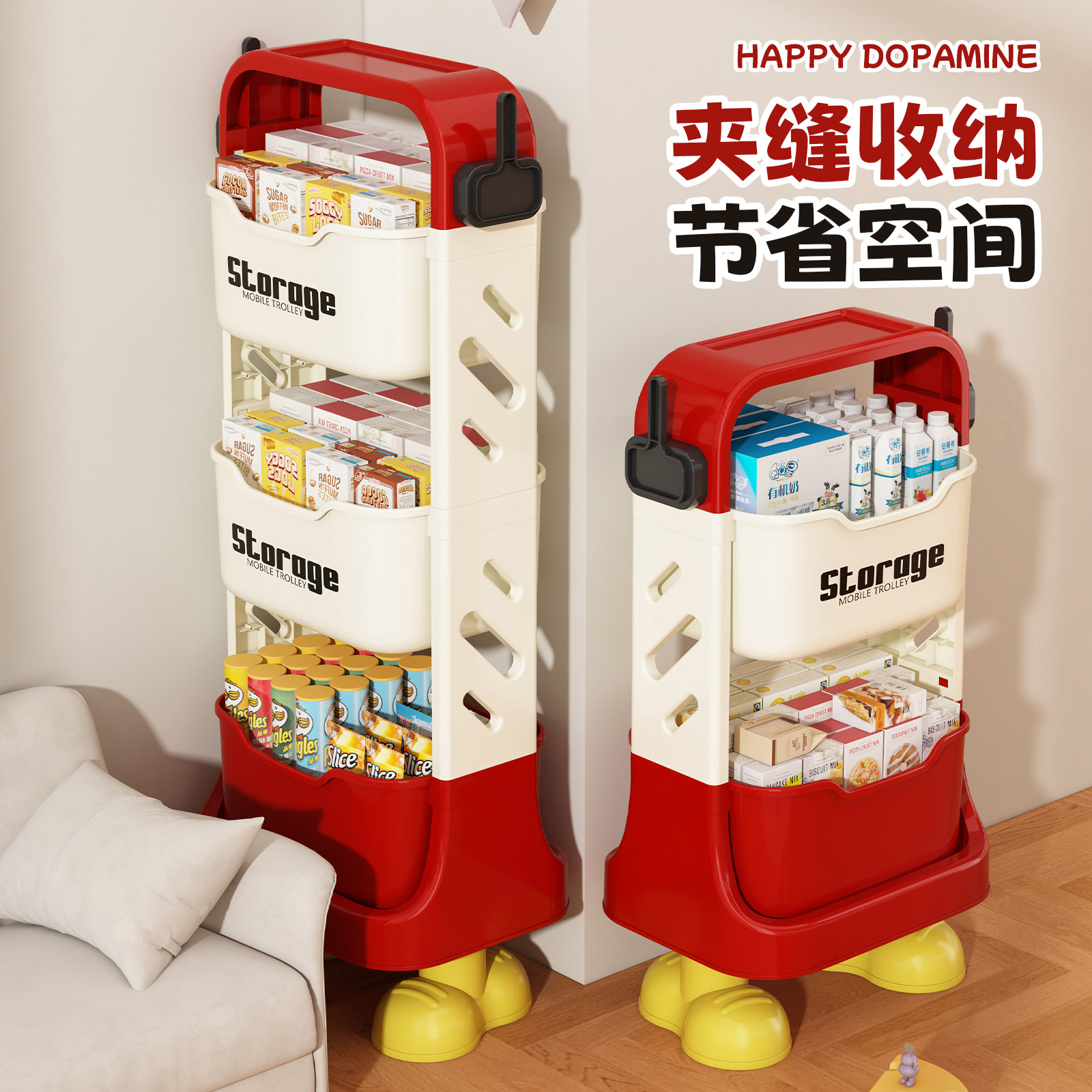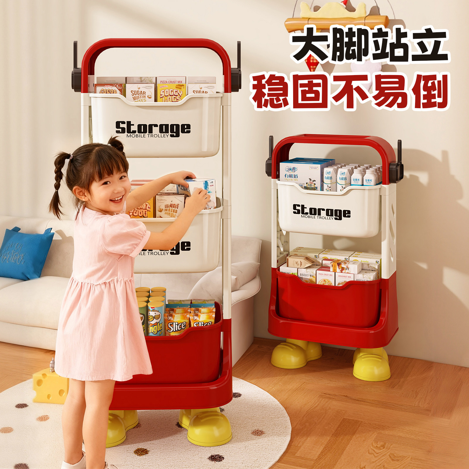 零食置物架家用客厅多层移动卧室床头柜落地儿童玩具小推车收纳架