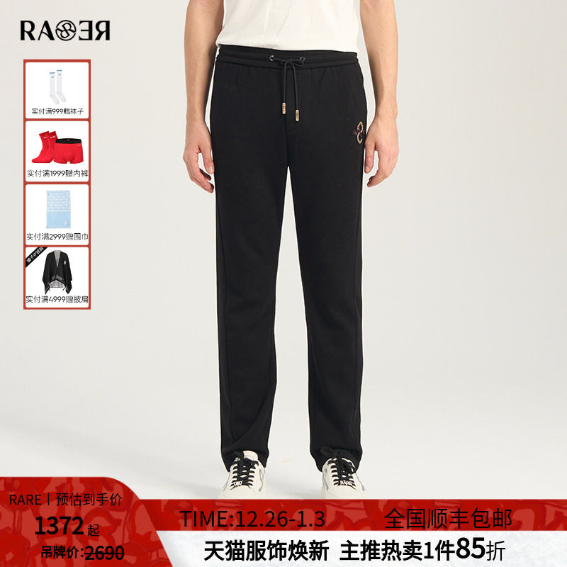 RARE威雅男裤 主题提花黑色休闲裤子 春夏新款男士卫裤