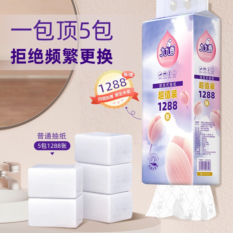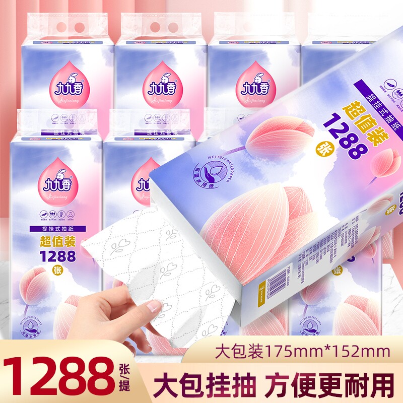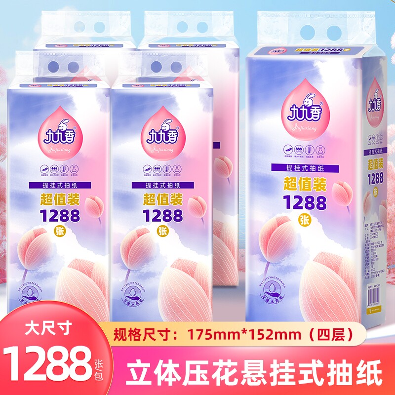 6大提九九香抽纸悬挂1288张/提可悬挂抽纸面巾纸4层餐巾纸卫生纸