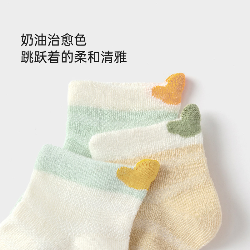 babylove婴儿袜子夏季透气弹力短袜新生宝宝短筒可爱松口袜3双装