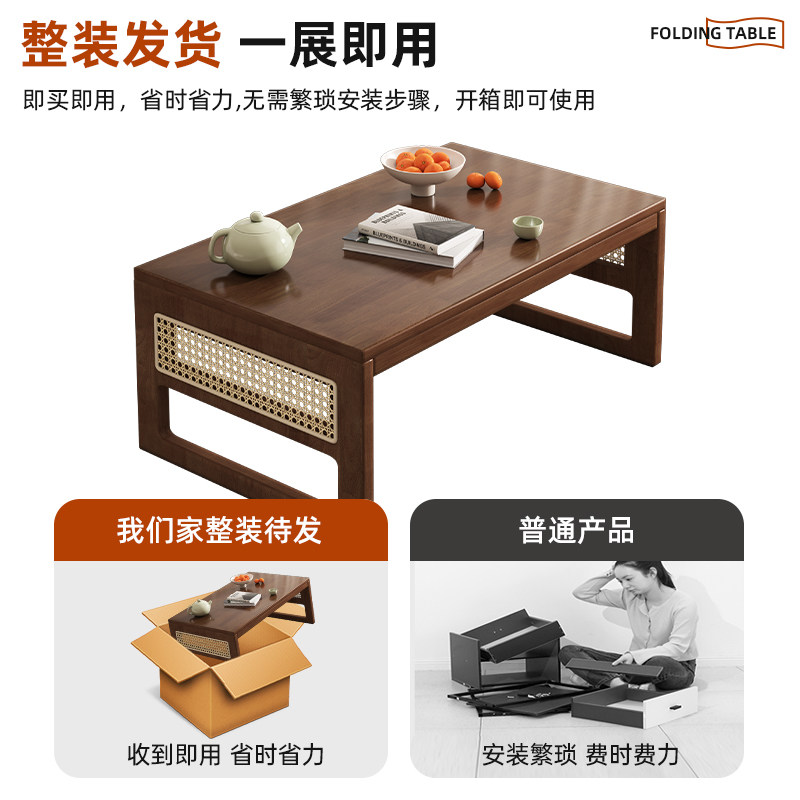 实木飘窗小桌子可折叠小户型卧室家用沙发边几简易新款原木风炕几
