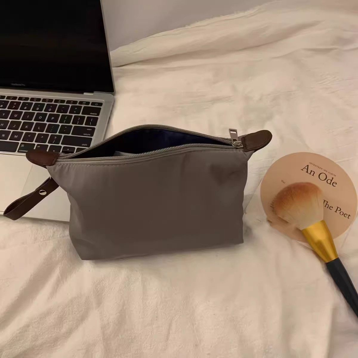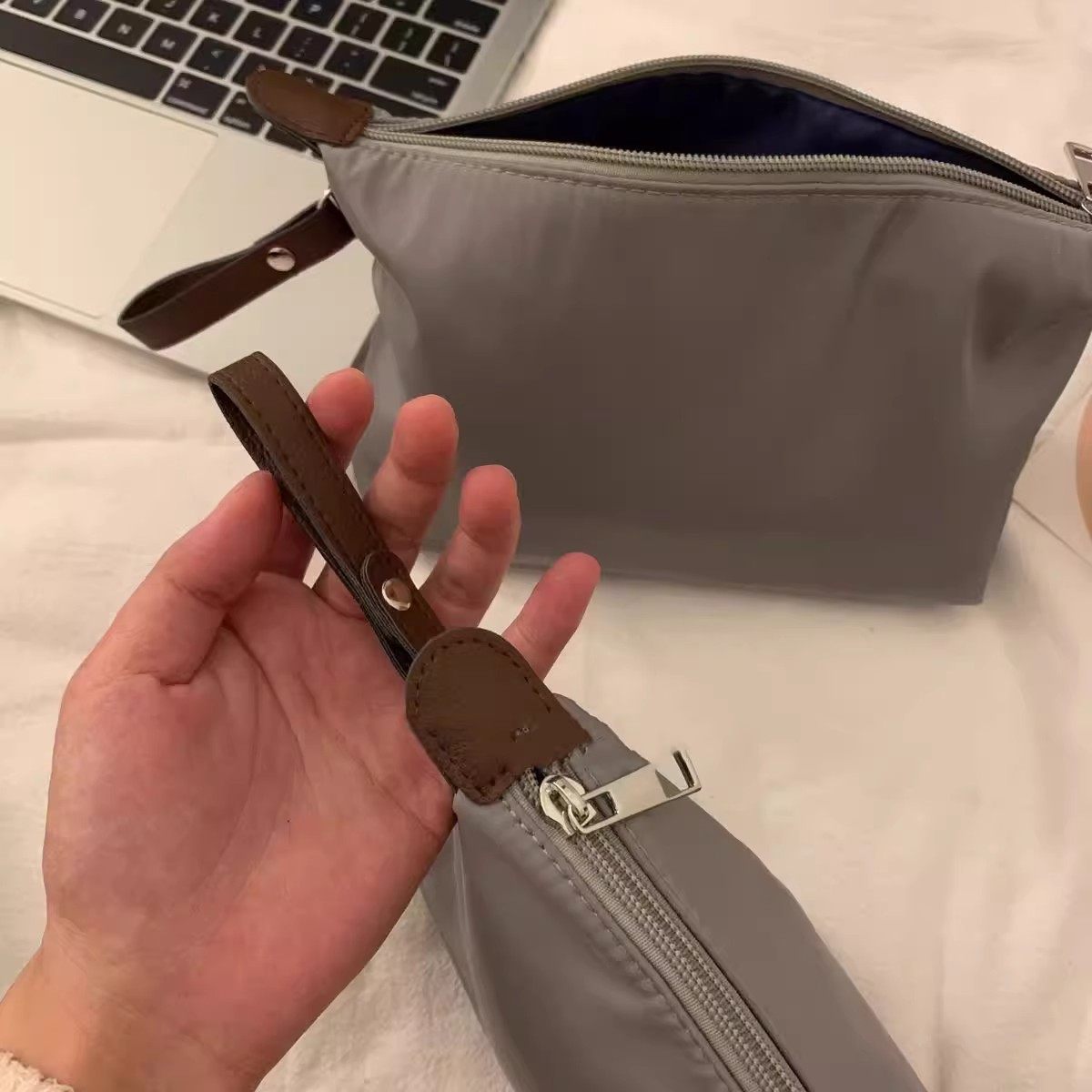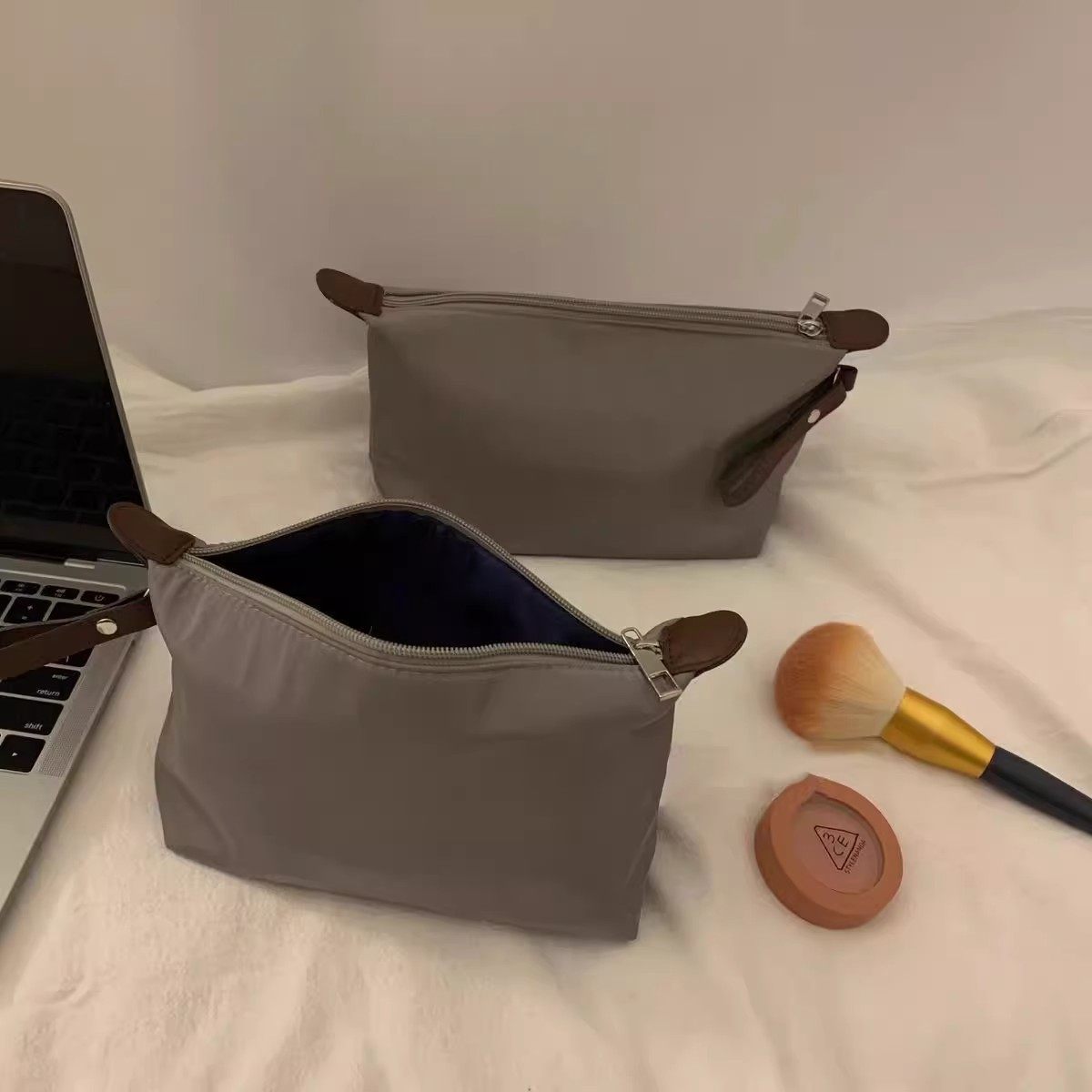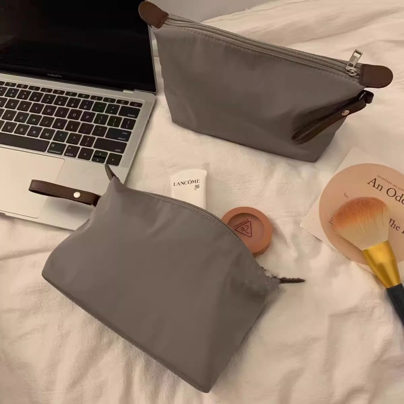 高级感哑光灰化妆包旅行便携化妆品收纳包手提饺子包防水洗漱袋