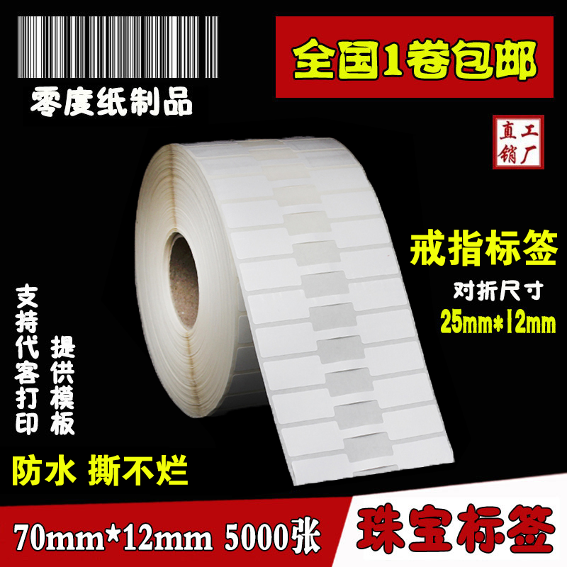 珠宝标签70*12*5000张 条码吊牌玉器眼镜标价饰品首饰打印不干胶