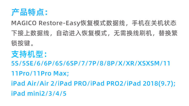 X XS恢复模式数据线 MAGICO RESTORE-EASY 自动进入无需繁锁按键