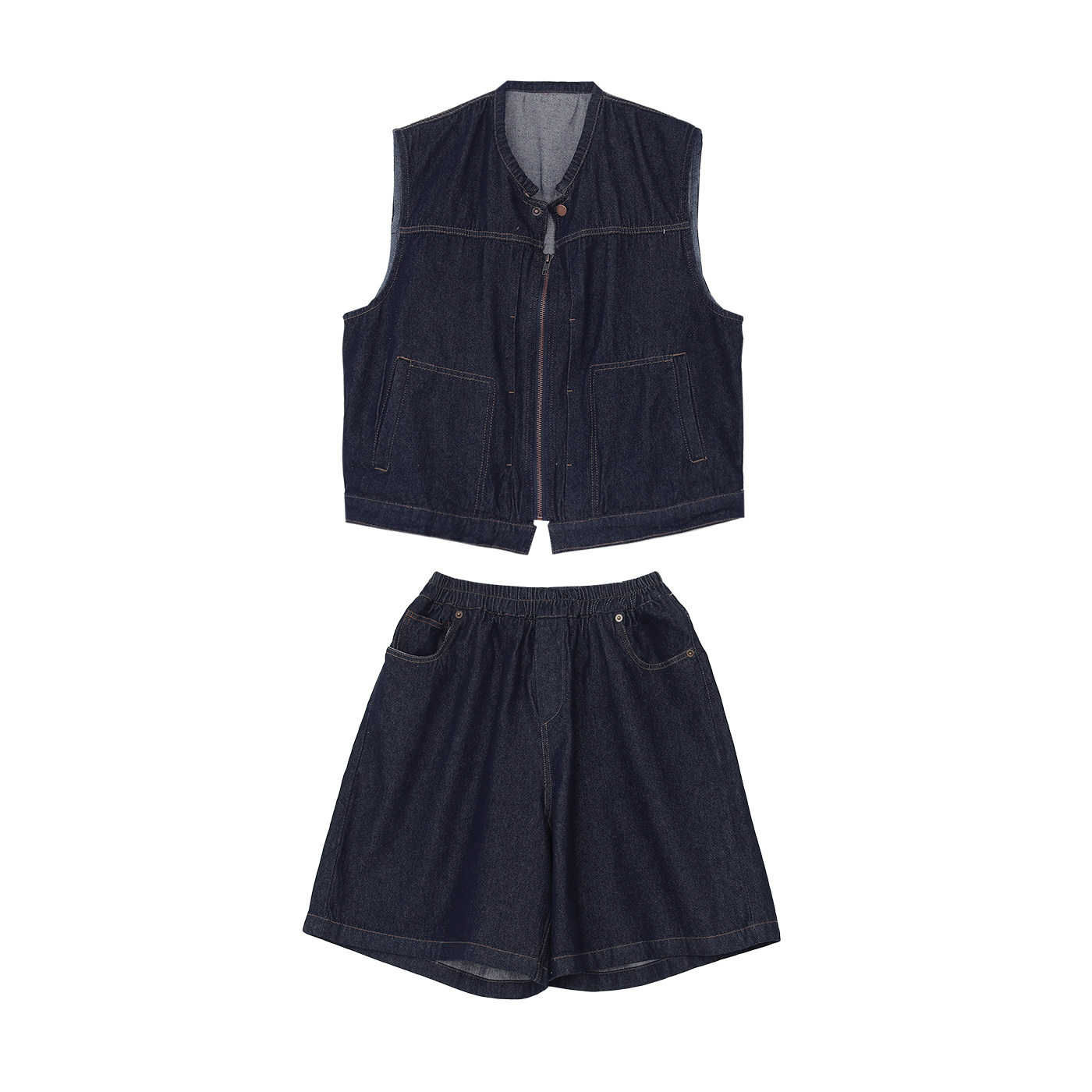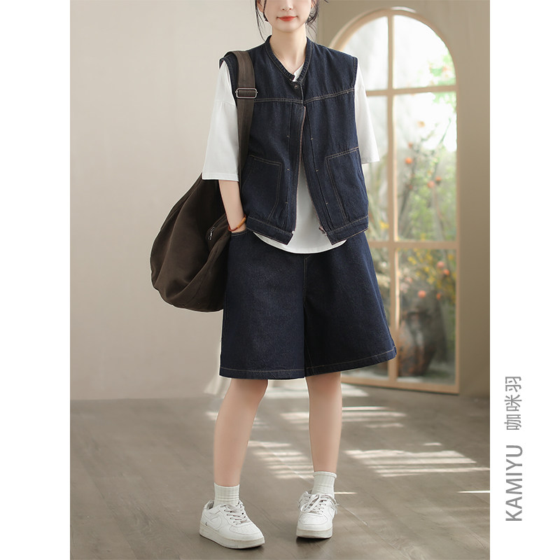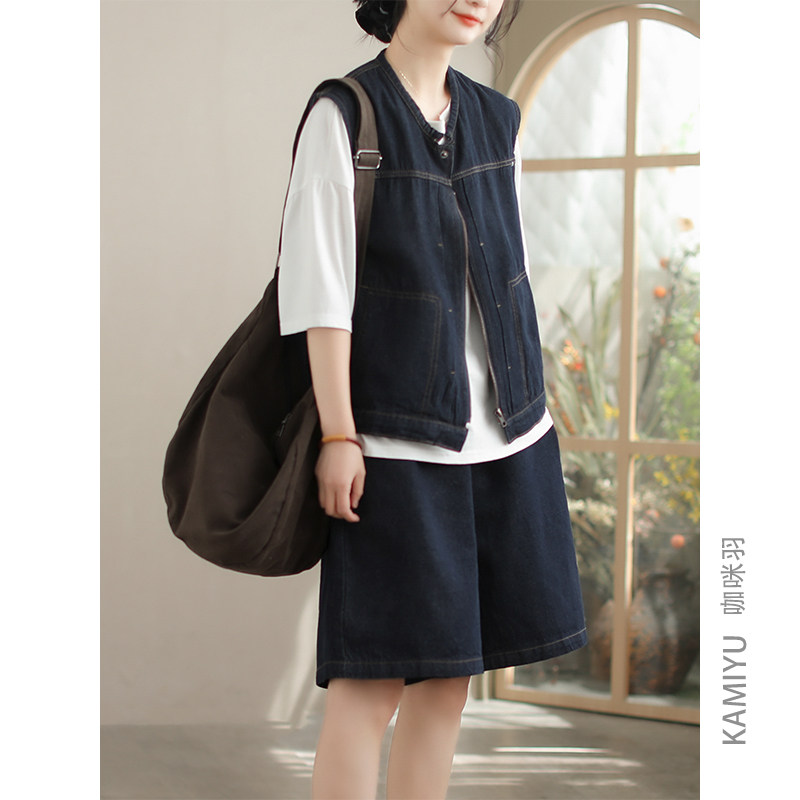 咖咪羽牛仔套装女夏新款无袖坎肩女士马甲宽松时尚女装牛仔五分裤