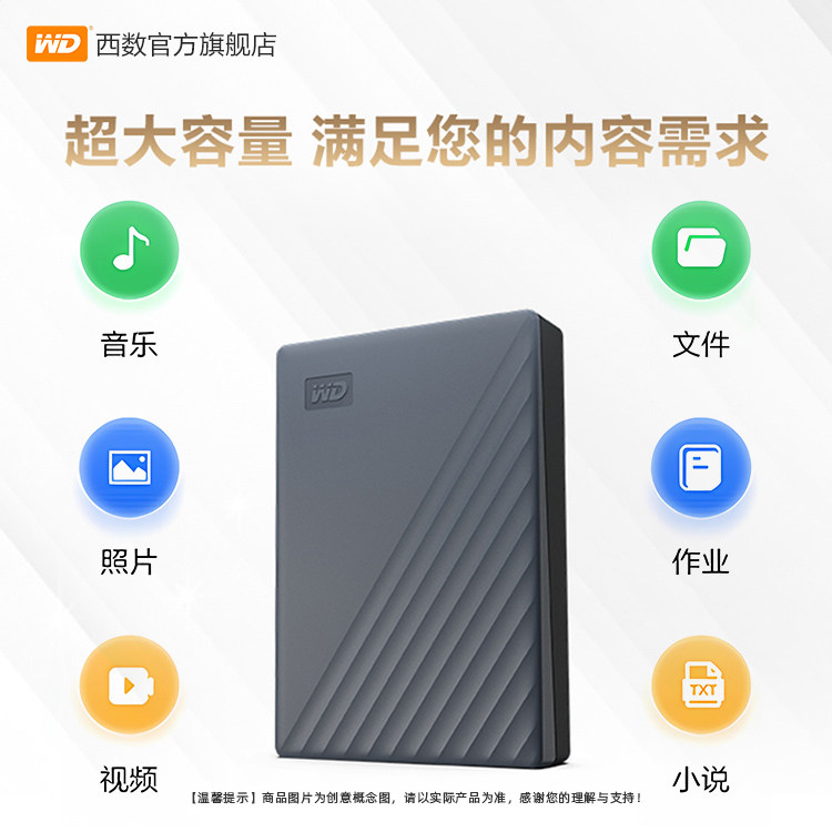 WD西部数据移动硬盘2t电脑手机外接外置高速存储原装type-c转接口