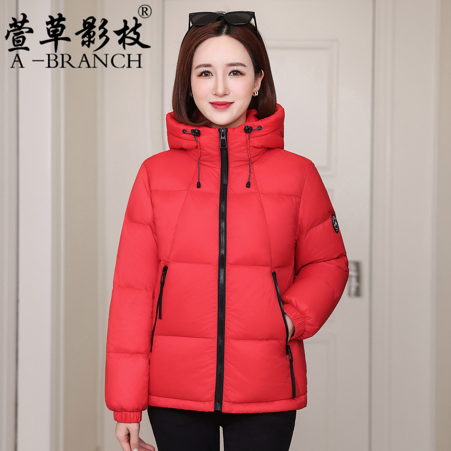 90白鸭绒妈妈连帽羽绒服2025新款中年女冬季小个子宽松保暖厚外套