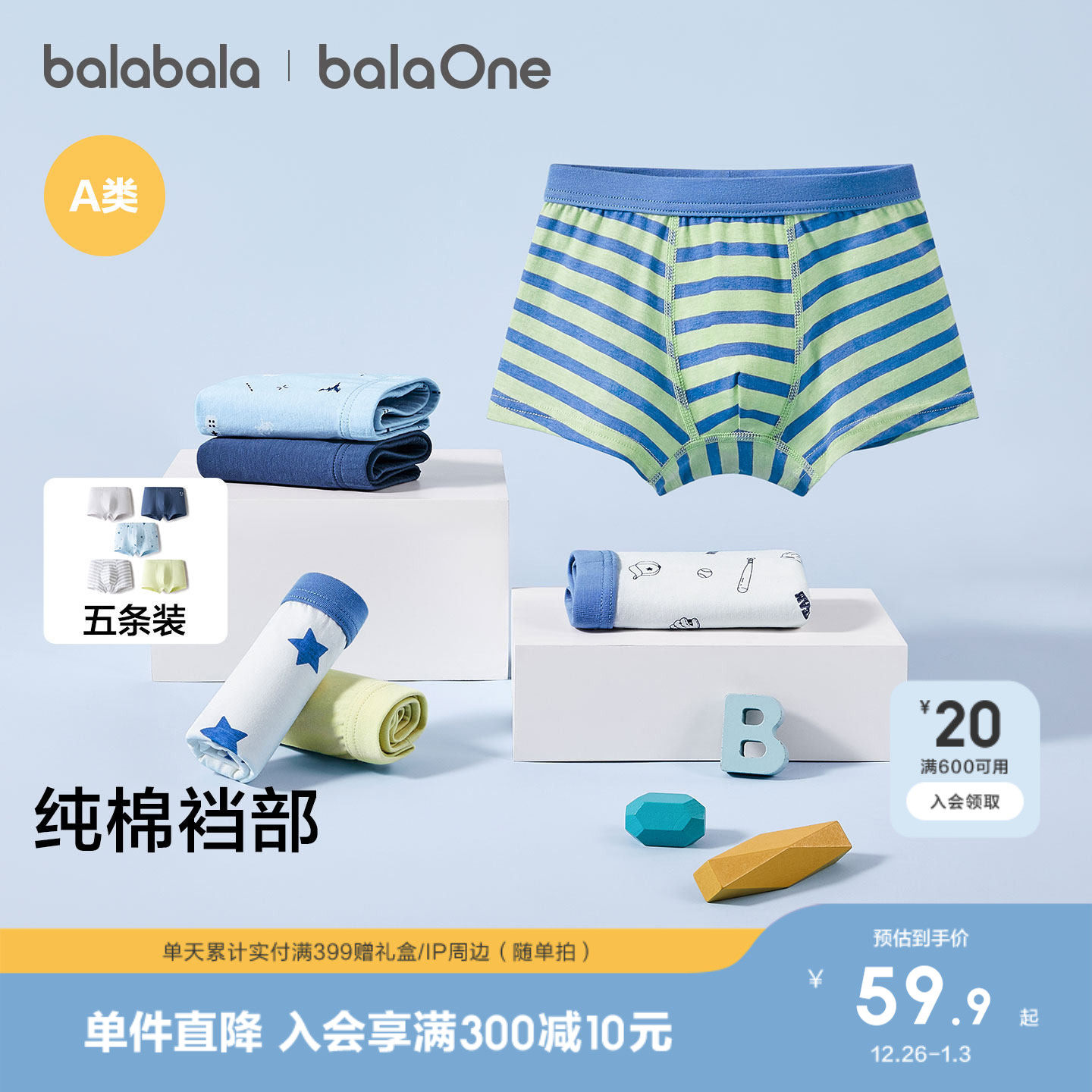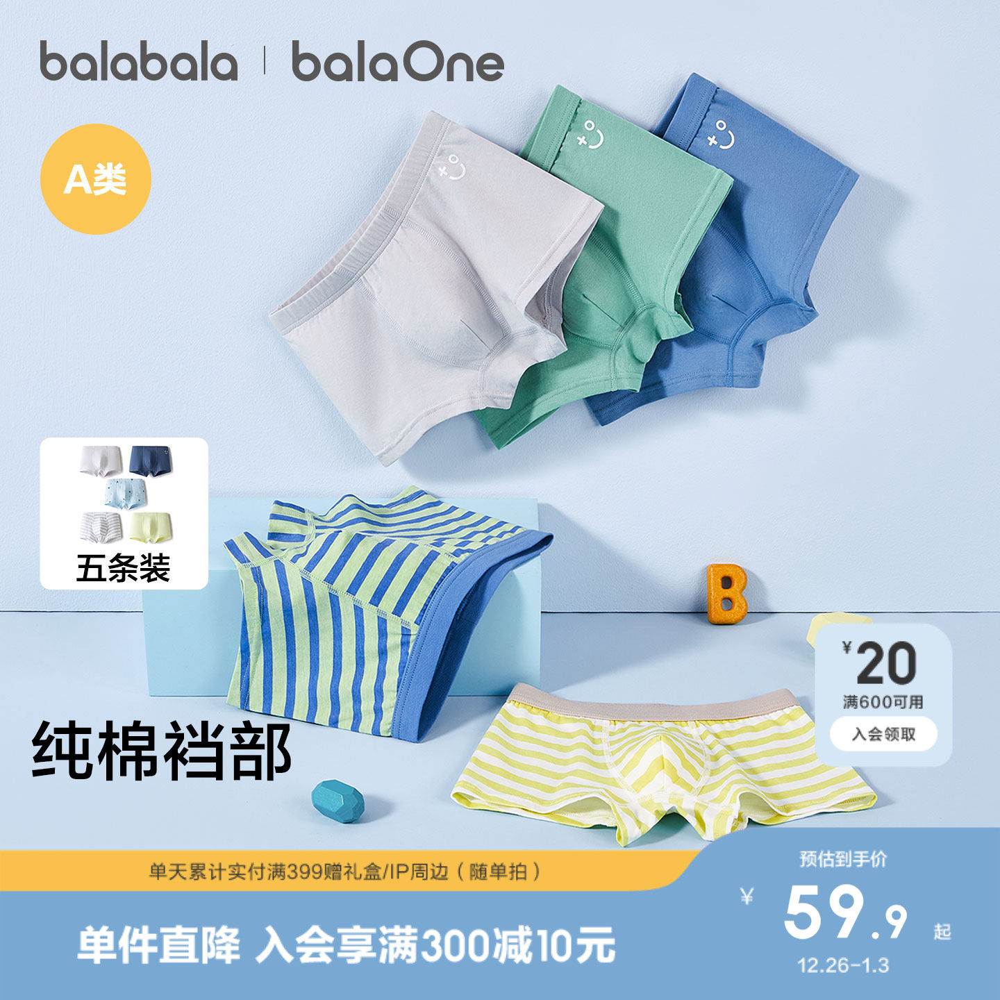 巴拉巴拉儿童内裤棉a类男童平角短裤小童中大童柔弹四角裤五条装