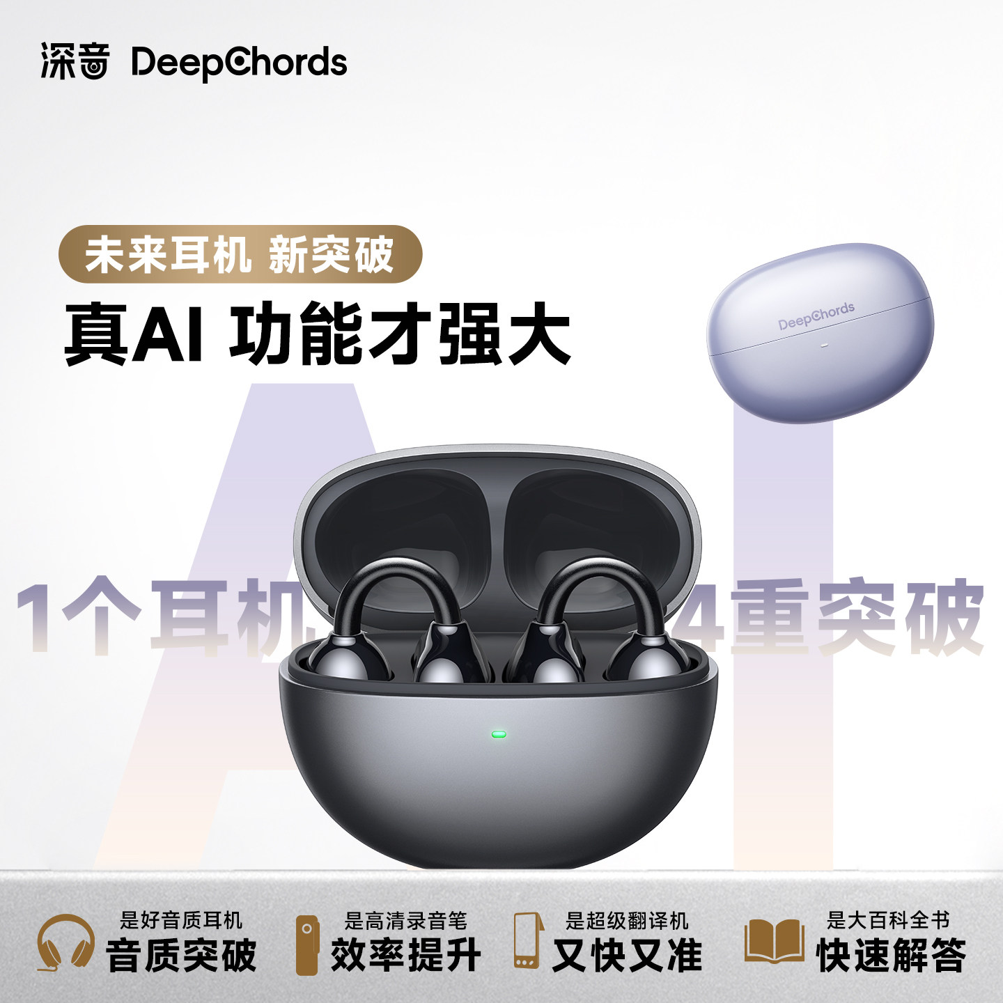 深音蓝牙耳机耳夹式豆包AI智能翻译录音气传导开放式运动2025新款