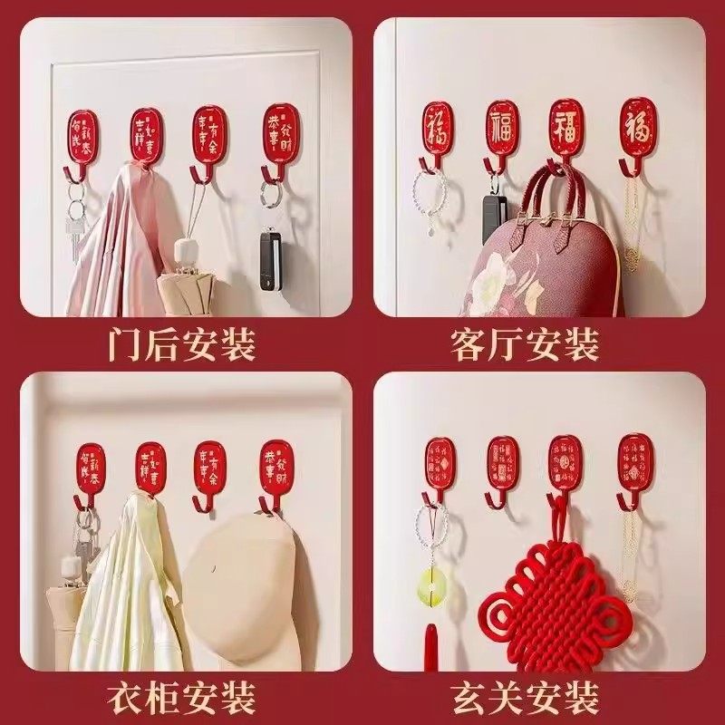 福字挂钩免打孔喜庆承重粘钩新年福字红色强力粘胶门后墙壁无痕钩