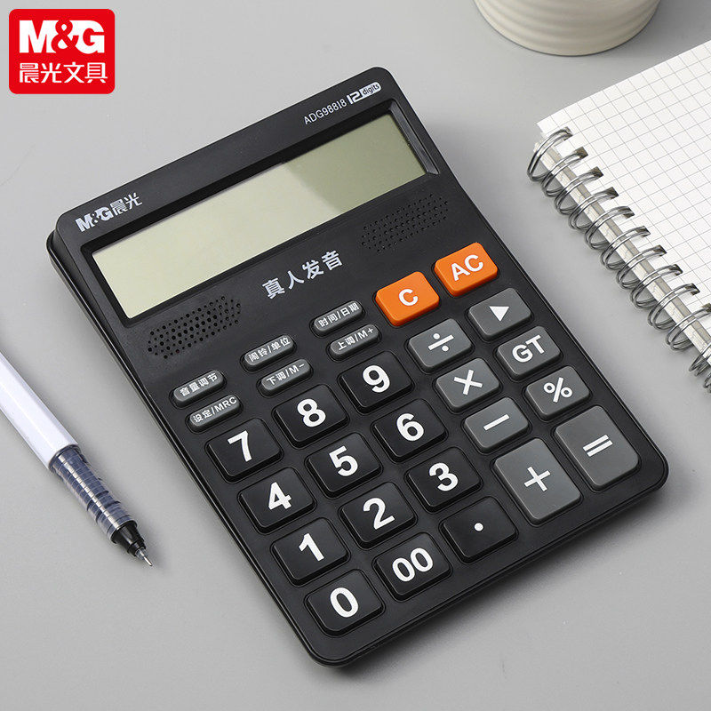 晨光计算器办公用语音型计算器学生用初中办公室用财务会计计算机ADG98818真人发音语音商用冲锋号大屏幕财务